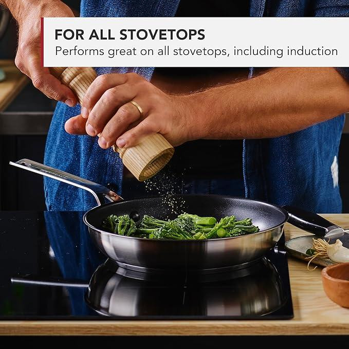 مجموعه کیچن اید شامل قابلمه های 16 سانتی متری/1 5 لیتری، 18 سانتی متری/2.1 لیتری، 20 سانتی متری/3.1 لیتری، با درب و پوشش نچسب برای رهاسازی آسان مواد غذایی، عاری از هرگونه مواد شیمیایی PFAS می باشد. سطح پخت و پز ضد خش با کیفیت بالا، در برابر استفاده مداوم روزانه مقاومت می کند. درب شیشه ای برای دقت پخت و پز و دستگیره های استیل ضد زنگ و خنک برای راحتی و گرفتن ایمن مناسب برای تمامی اجاق ها از جمله القایی بوده و همچنین قابل استفاده در فر تا دمای 220 درجه سانتیگراد قابل شستشو در ماشین ظرفشویی می باشد.