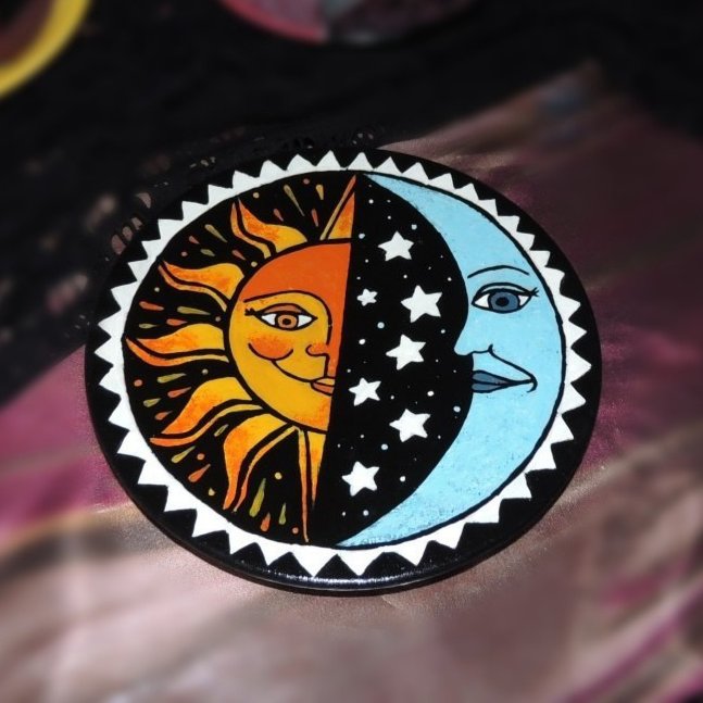 بشقاب دیوارکوب سفالی نقاشی شده ماه و ستاره قطر 20 سانتی متر مبلمونسرا مدل 259435