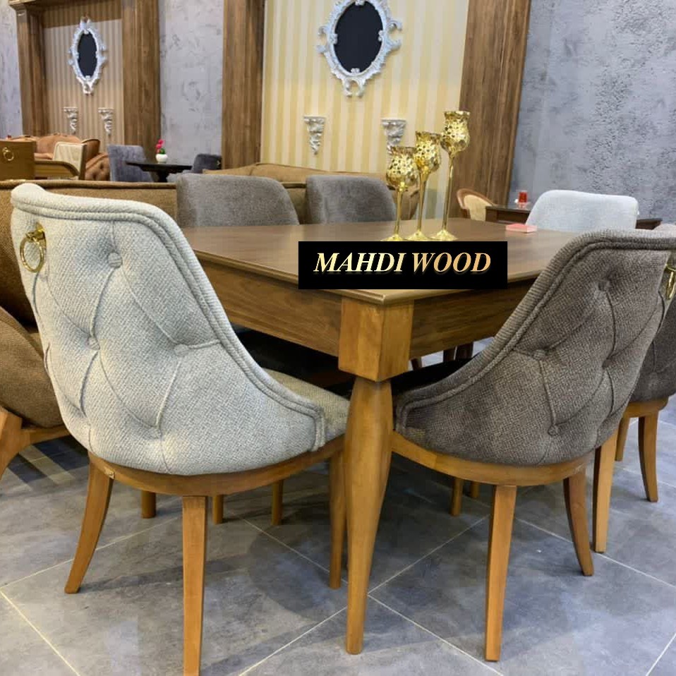 قیمت مندرج میز و صندلی شش نفره به همراه پارچه مازراتی است. سرویس شش نفره ی این کار هم موجود است برای گرفتن قیمت پیام دهید. این کار کاملا از چوب راش و توسکا ی وارداتی است. رنگ چوب و پارچه ی کار به سلیقه ی شماست و انتخاب رنگ دارد.