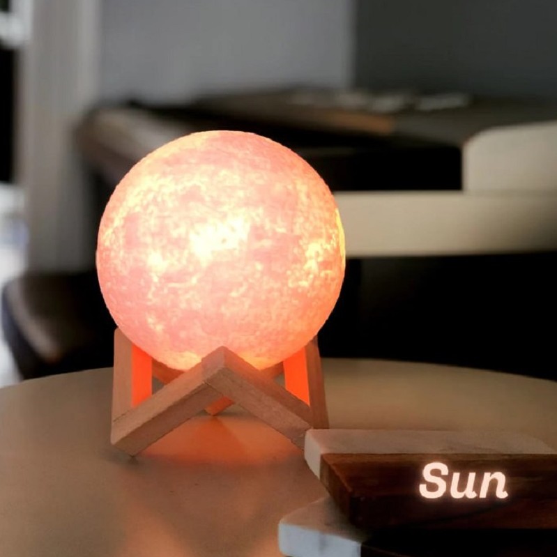 آباژور طرح ستاره خورشید با پایه چوبی جنسش پلاستیکه سنگ نمک نیست دارای اداپتور کلید روشن و خاموش رنگبندی لامپ به دلخواه مشتری سیارات دیگه هم در غرفه موجوده عطارد زهره مریخ مشتری زحل اورانوس نپتون پلوتون ماه زمین