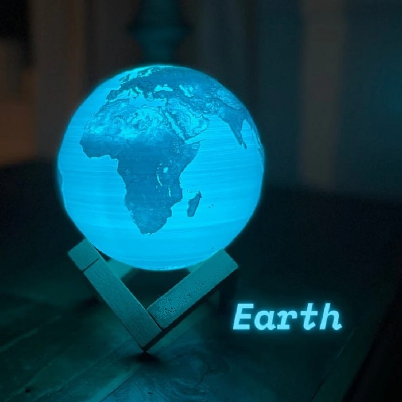 آباژور طرح کره زمین با پایه چوبی جنسش پلاستیکه سنگ نمک نیست دارای اداپتور کلید روشن و خاموش رنگبندی لامپ به دلخواه مشتری سیارات دیگه هم در غرفه موجوده عطارد زهره مریخ مشتری زحل اورانوس نپتون پلوتون ماه خورشید