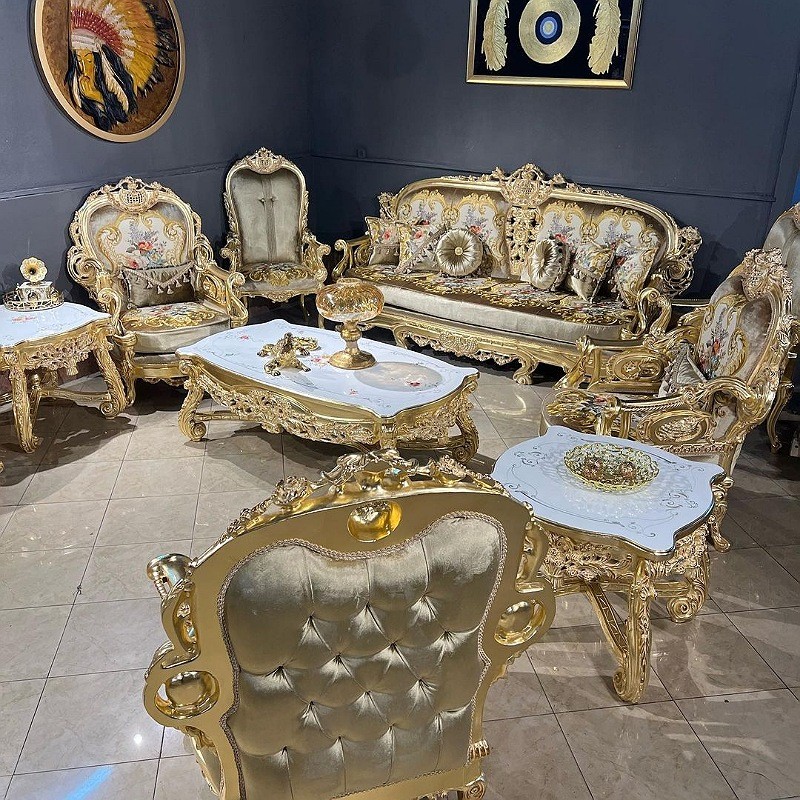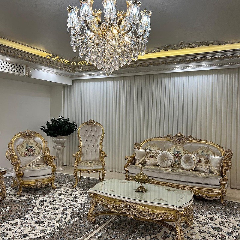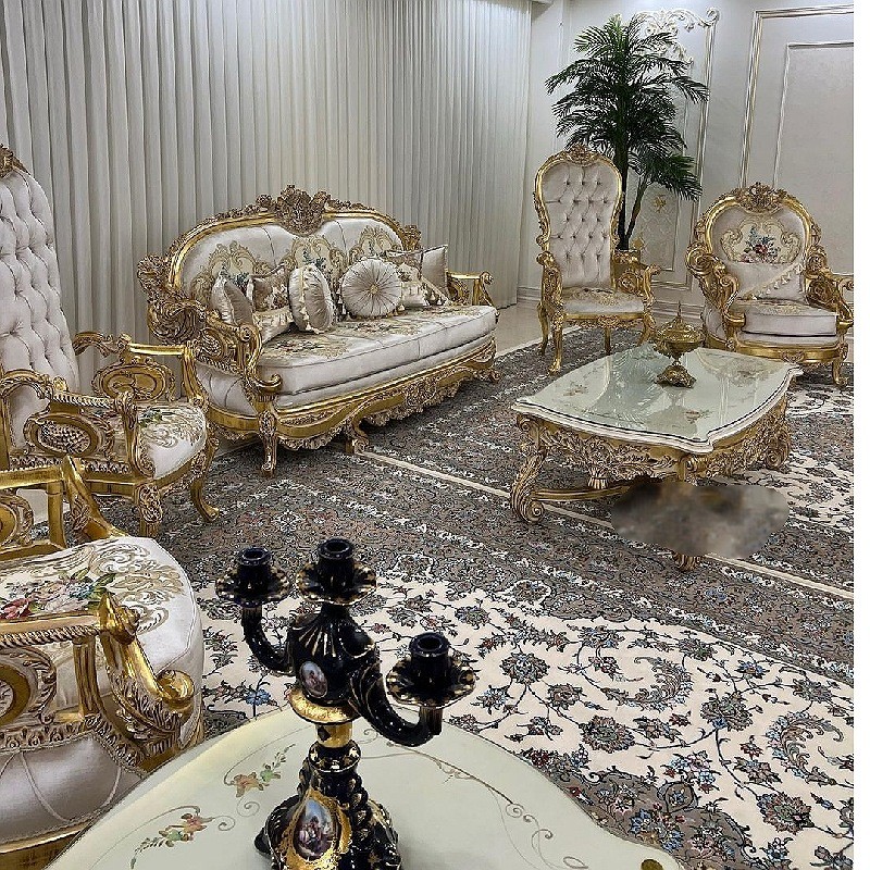 ارسال با باربری سرویس مبل سلطنتی استیل مدل زئوس نشیمن نه نفره باترکیب جلومبلی وعسلی چوب راش گرجستان کلاف اصلی ملایر پارچه گلدوزی اورجینال اصل رنگ اکلیل آلمانی درجه یک به همراه ورق طلا تودوزی های داخل و بیرون تماما ازاسفنج 30 کیلو یورتان کارشده فوم سرد13سانت شرکتی شرایط فروش نقد و اقساط حضوری و سفارش آنلاین فقط یک سوم نقد والباقی چک6ماهه بدون سود بدون ضامن اجرای تمام مراحل کار با رویت مشتری انجام خواهد شد