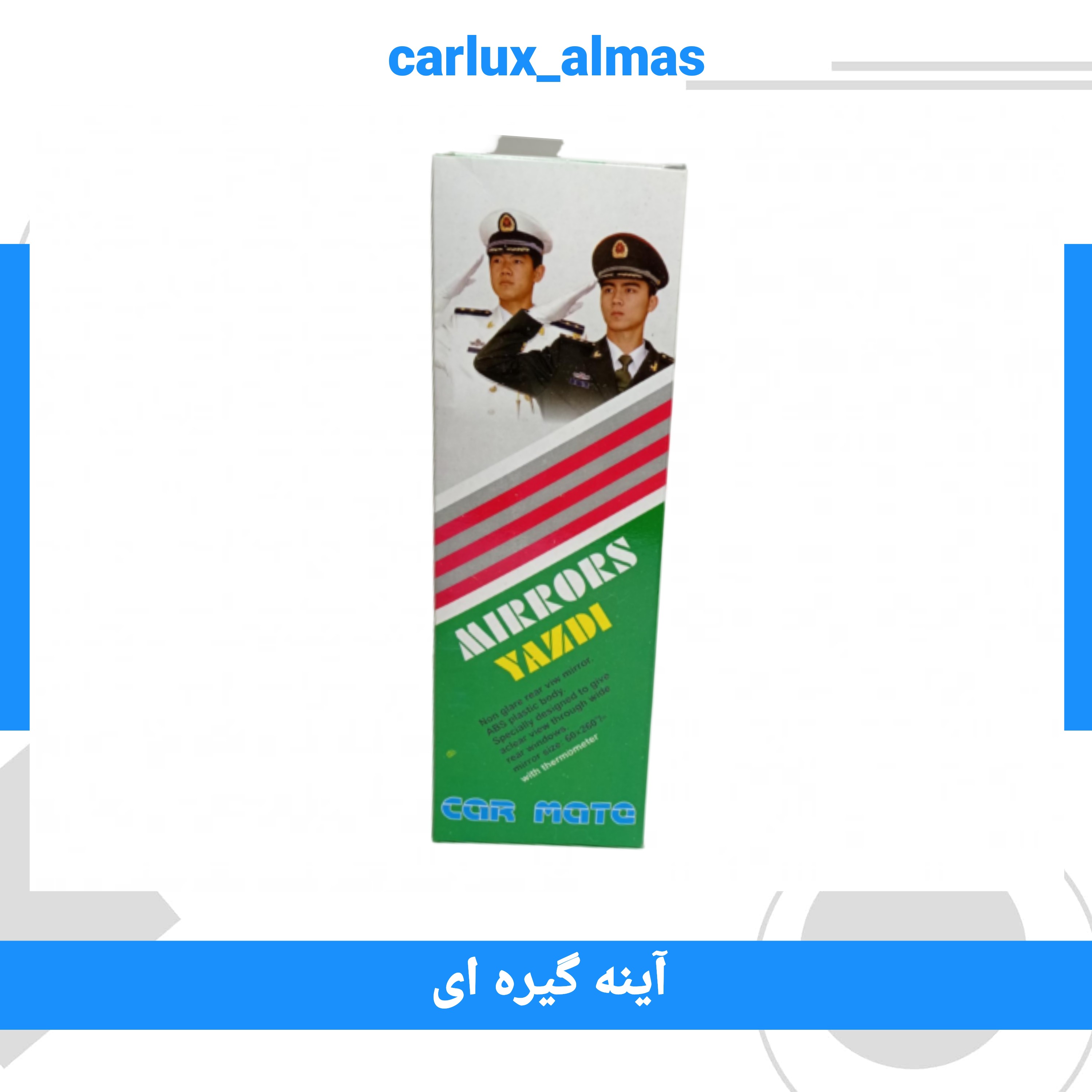 آینه درجه دار یزدی مدل گیره ای: 🔷 آینه وسط دماسنج دار خودرو با ابعاد 6 در 26 سانتی متر زاویه دید 170 درجه ایجاد می کند که زاویه دید بسیار بیشتری به نسبت آینه فابریکی خودرو به حساب می آید. 🔷 بدنه آینه از پلاستیک با کیفیت و مقاوم ساخته شده و خود آینه نیز شفافیت و کیفیت بالایی دارد. 🔷 قابل نصب روی تمامی خودرو ها 🔷 دماسنج فقط جنبه تزئینی دارد.