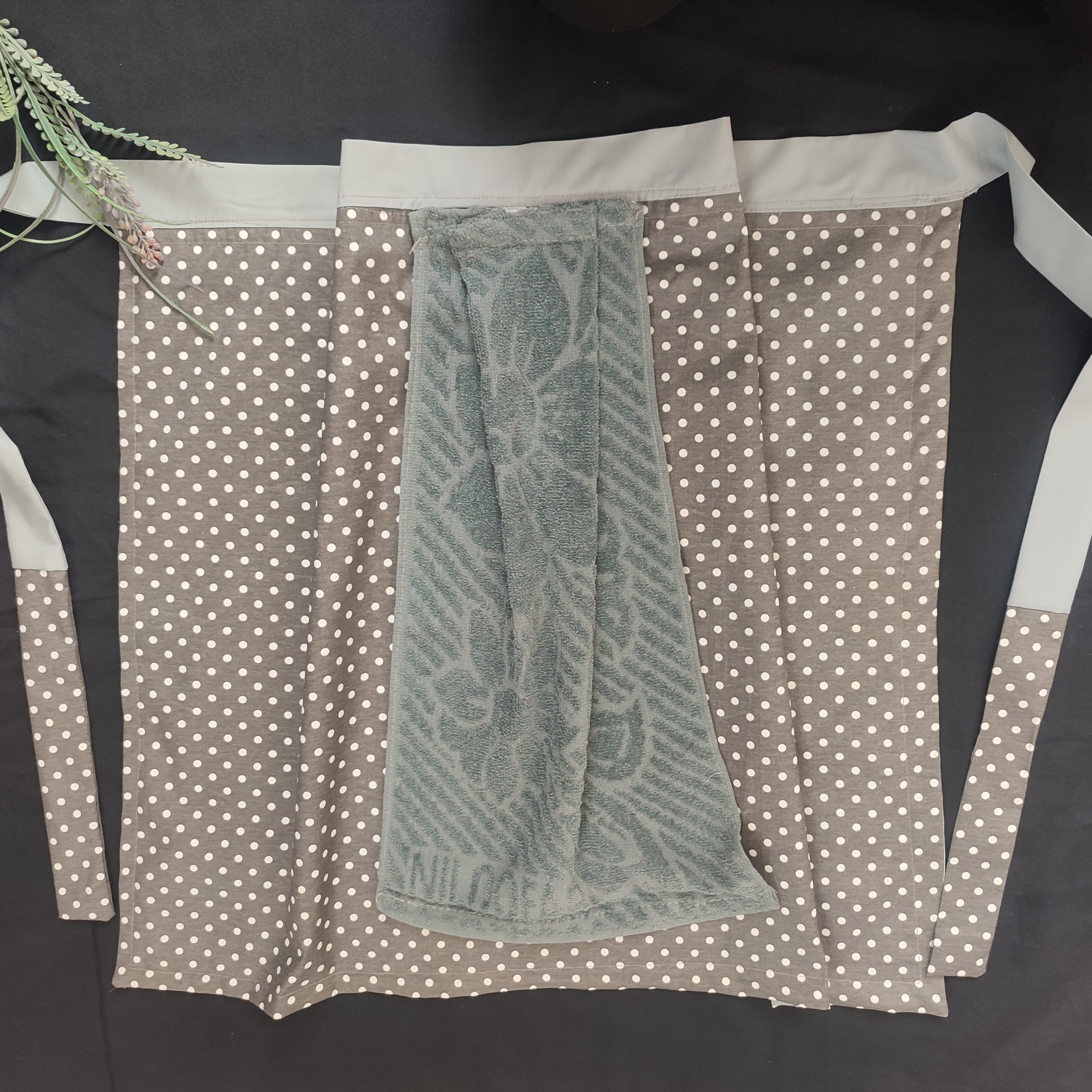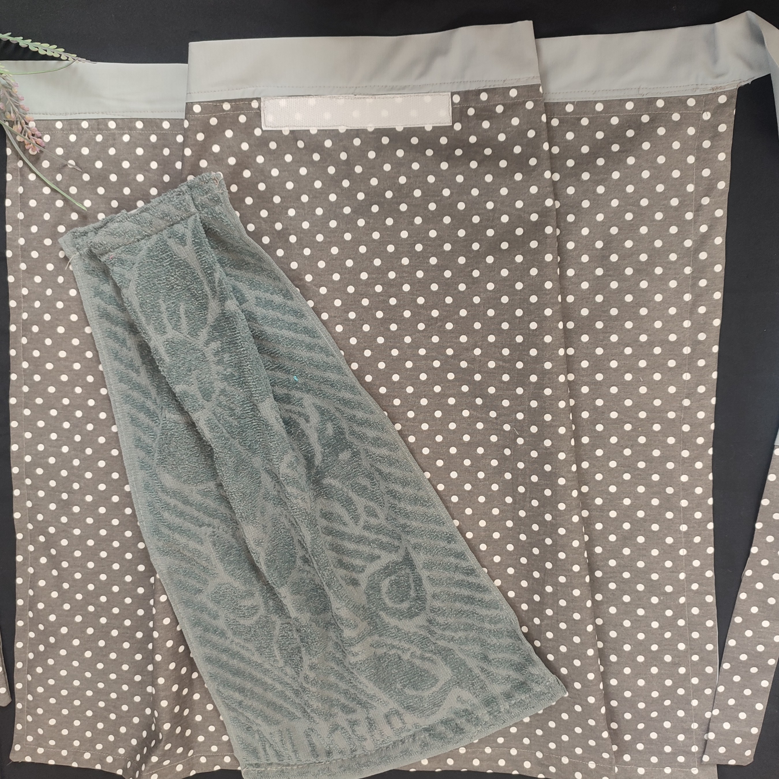 🌸پیش بند آشپزی با حوله 🌸برای مواقعی که موقع آشپزی دستتون کثیف میشه و اینجوری سریع دستتون پاک میکنید و بقیه جاهای آشپزخونه کثیف نمیشه 🌸یه مزیتی که داره حوله از پیش بند جدا میشه و میتوونید به راحتی بشورید و دوباره به پیش بند نصب کنید