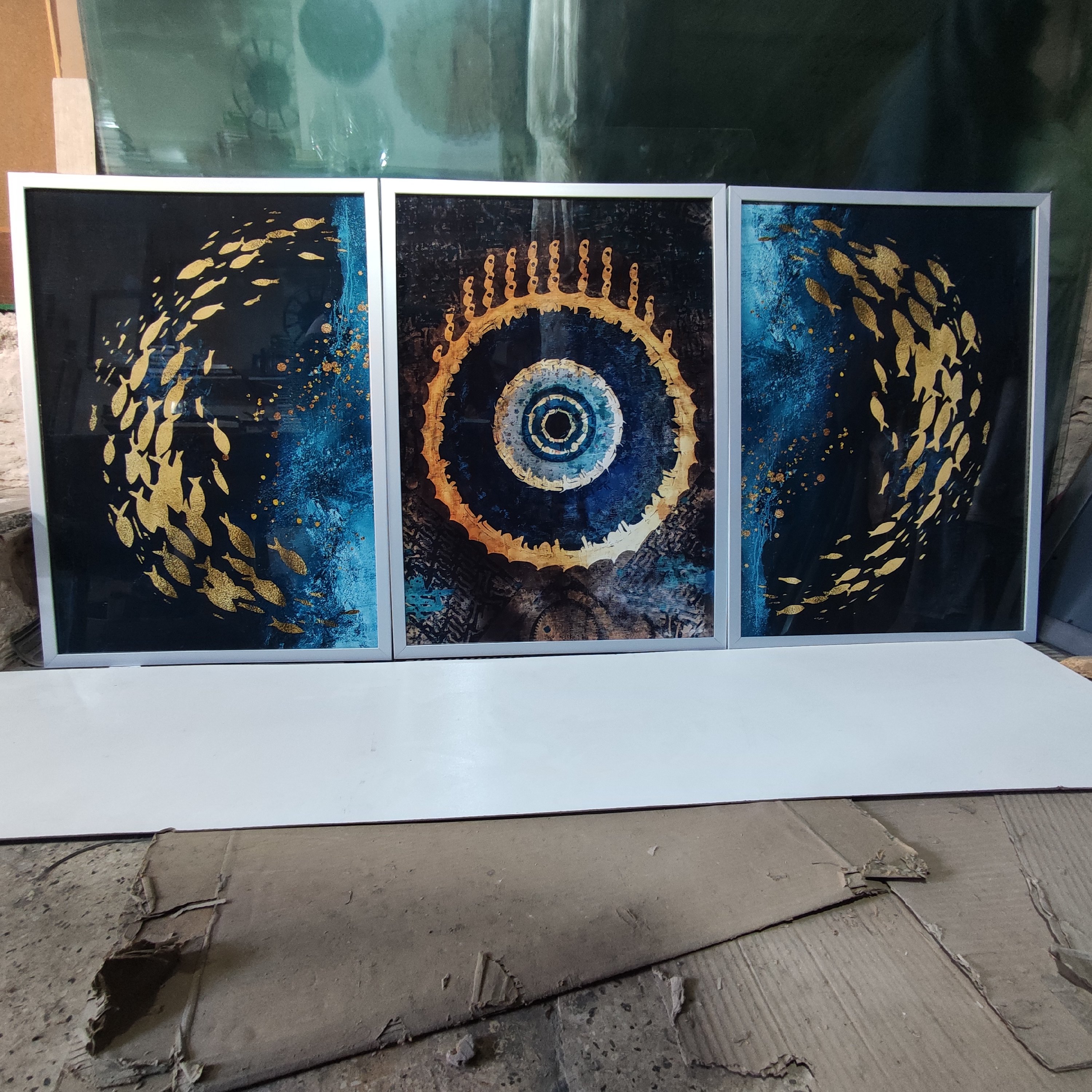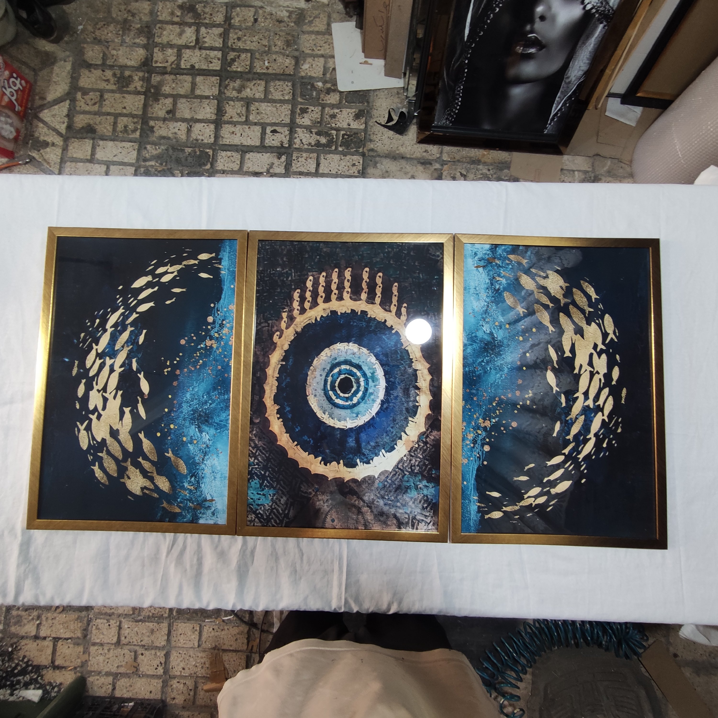 تابلو دکوراتیو چشم نظر و ماهی سه تکه مبلمونسرا مدل 267305