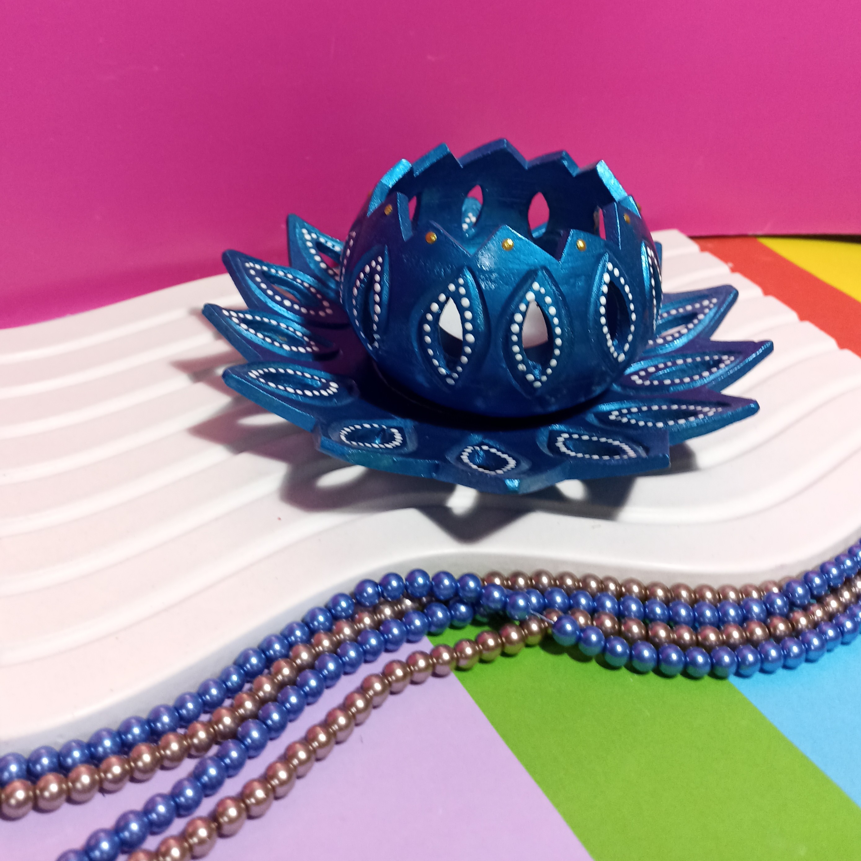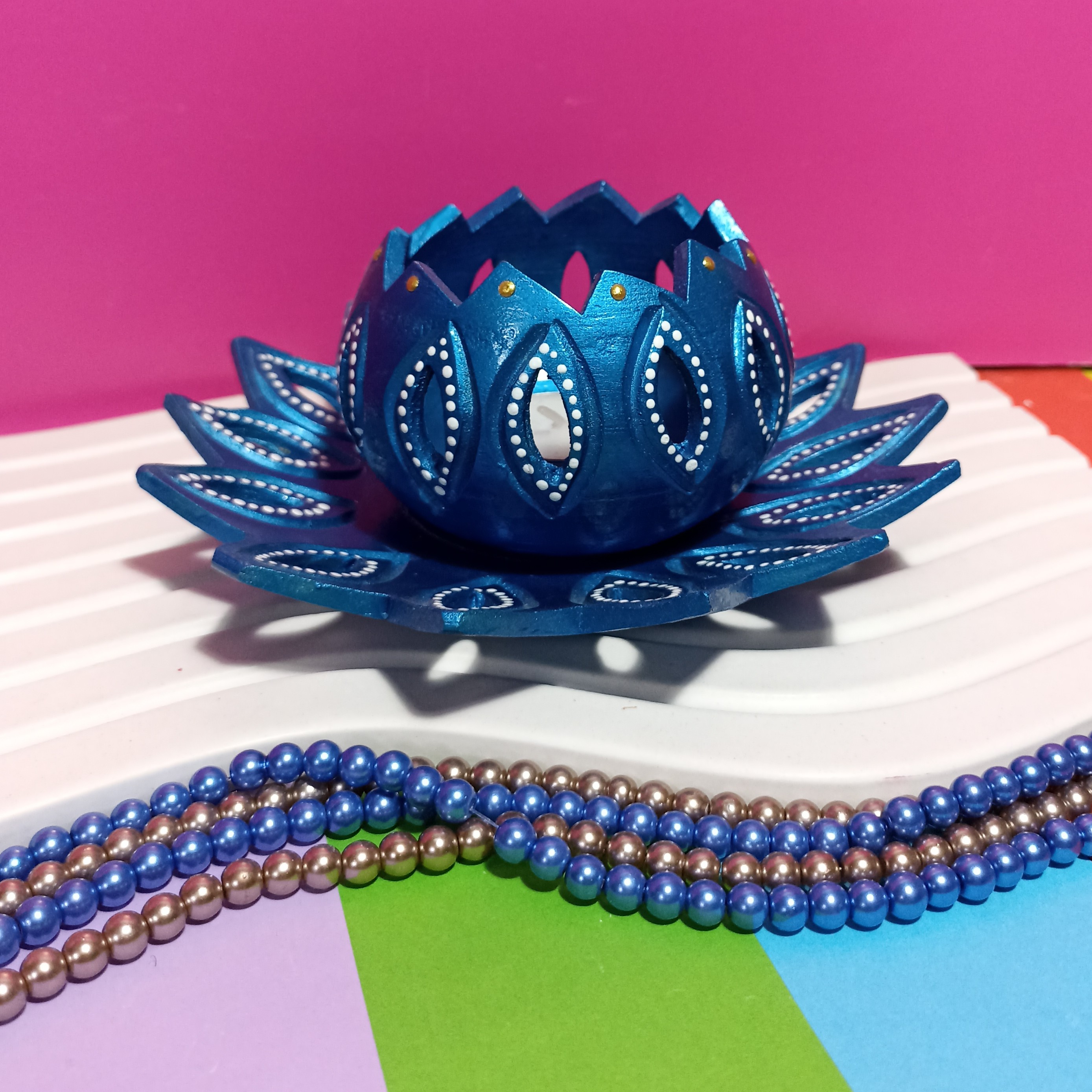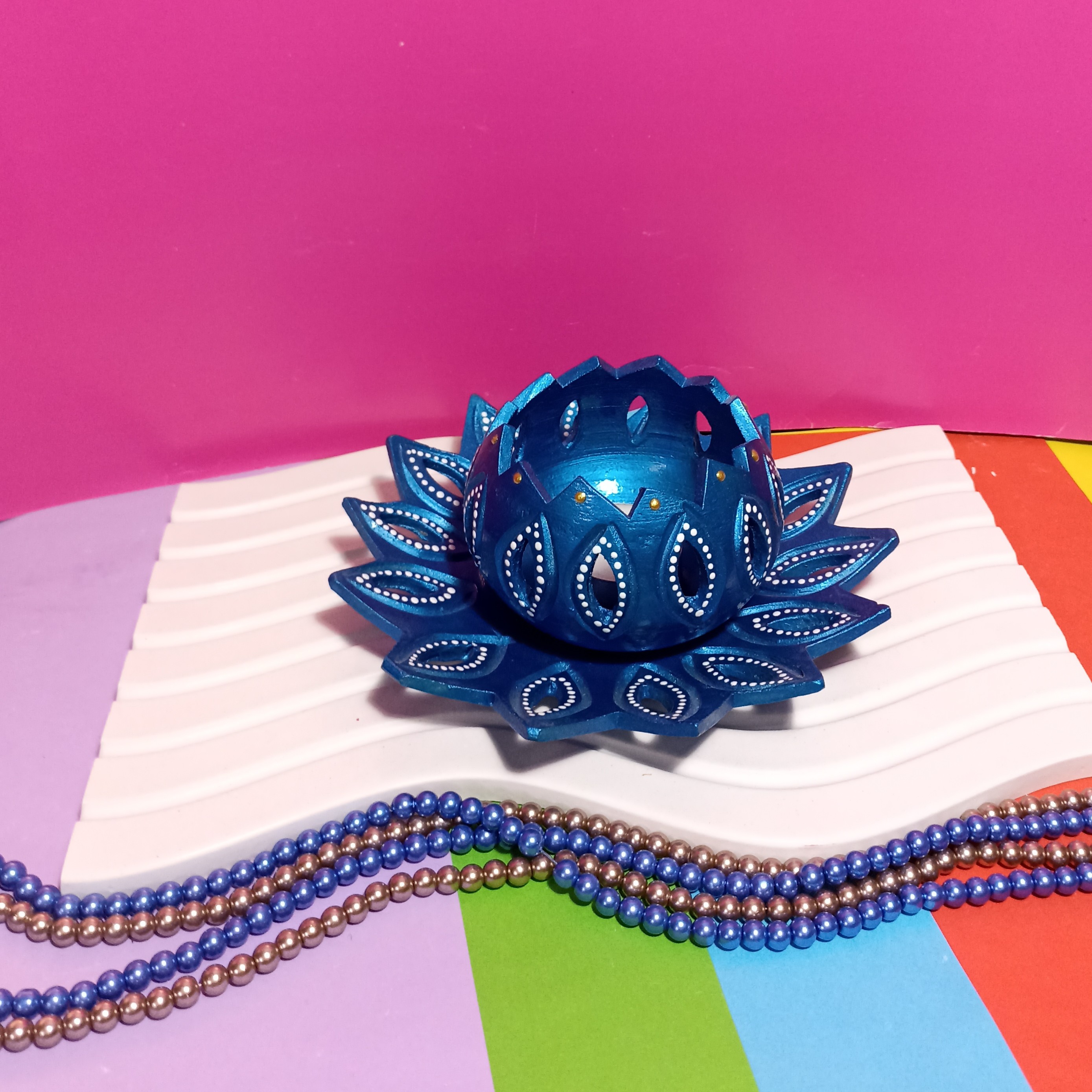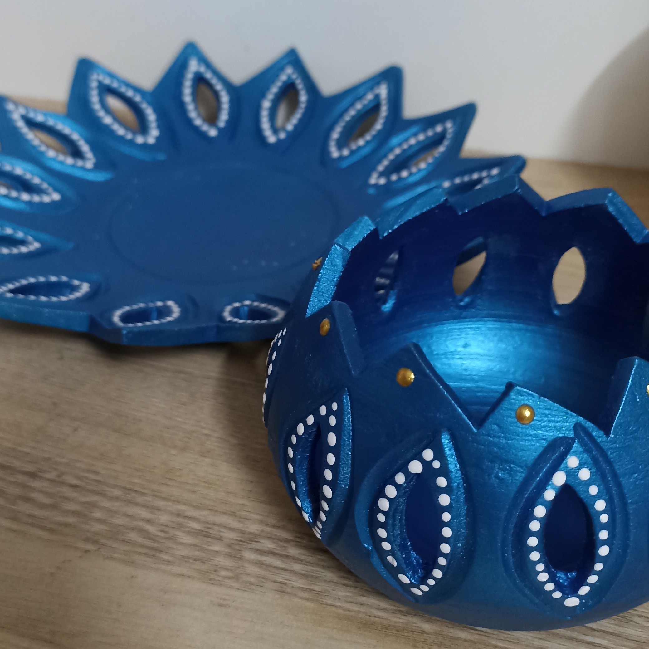جا شمعی و جا وایمری نقطه کوبی رنگ شده با رنگ آبی متالیکو ضد آب شده با روکش کریستال سرونیک ترک به صورت دو تیکه میباشد