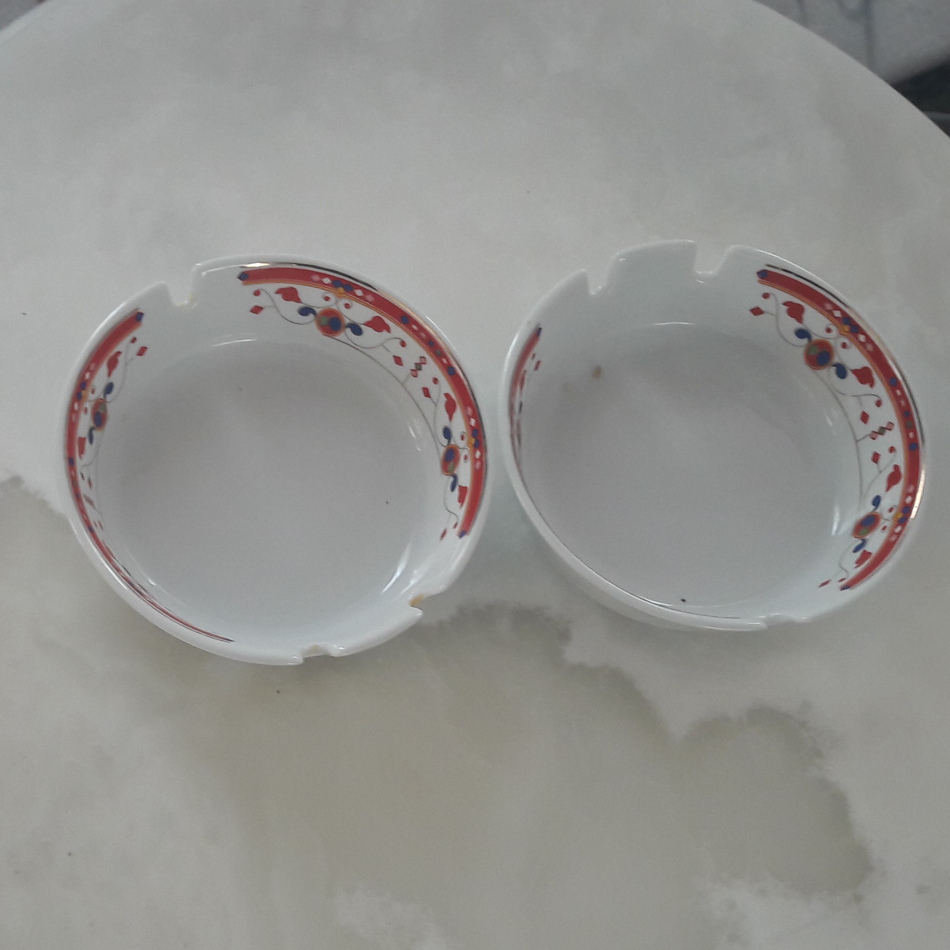 زیرسیگاری چینی قدیمی بسیار زیبا حاشیه قرمز به صورت جفت تقدیم میشه قیمت مناسب