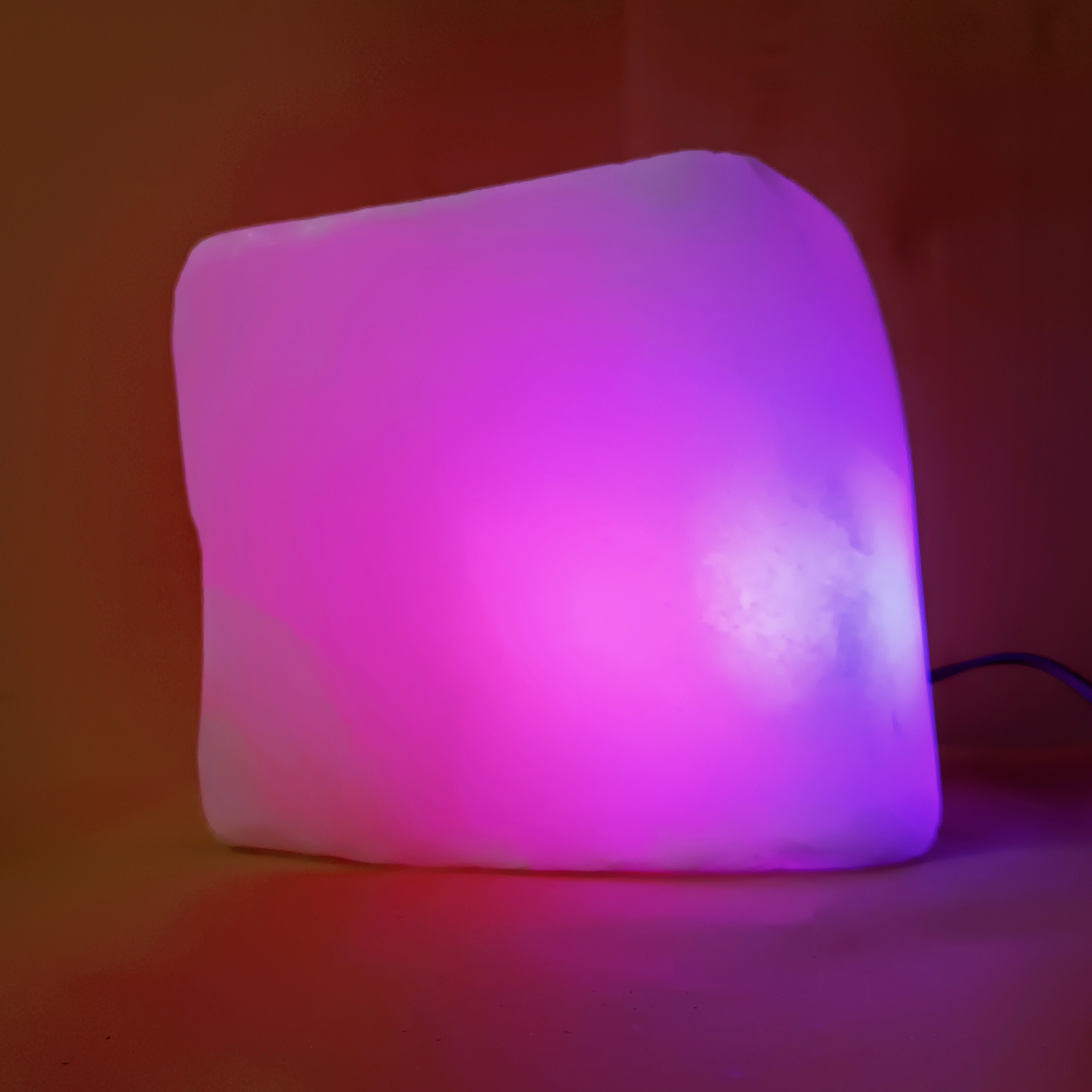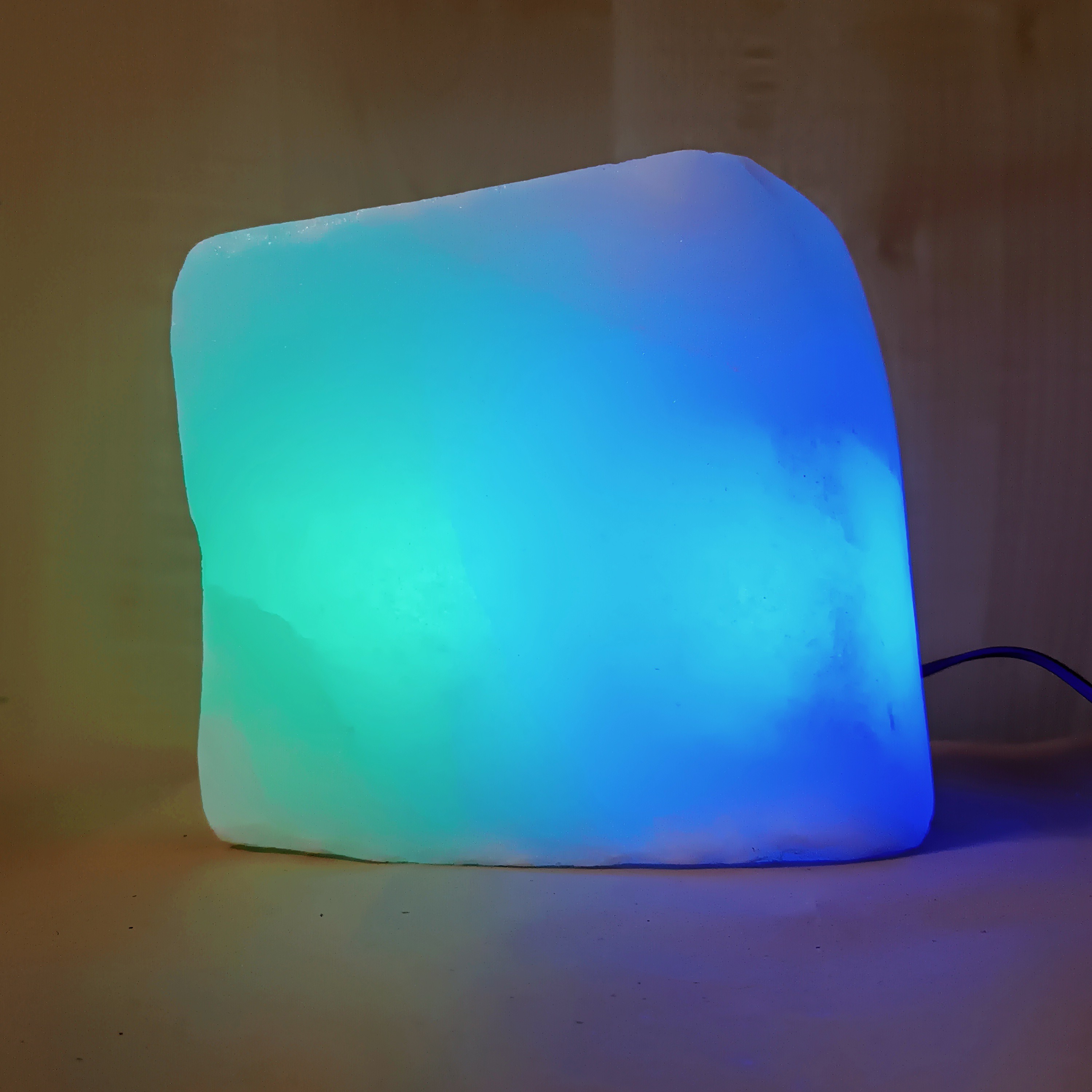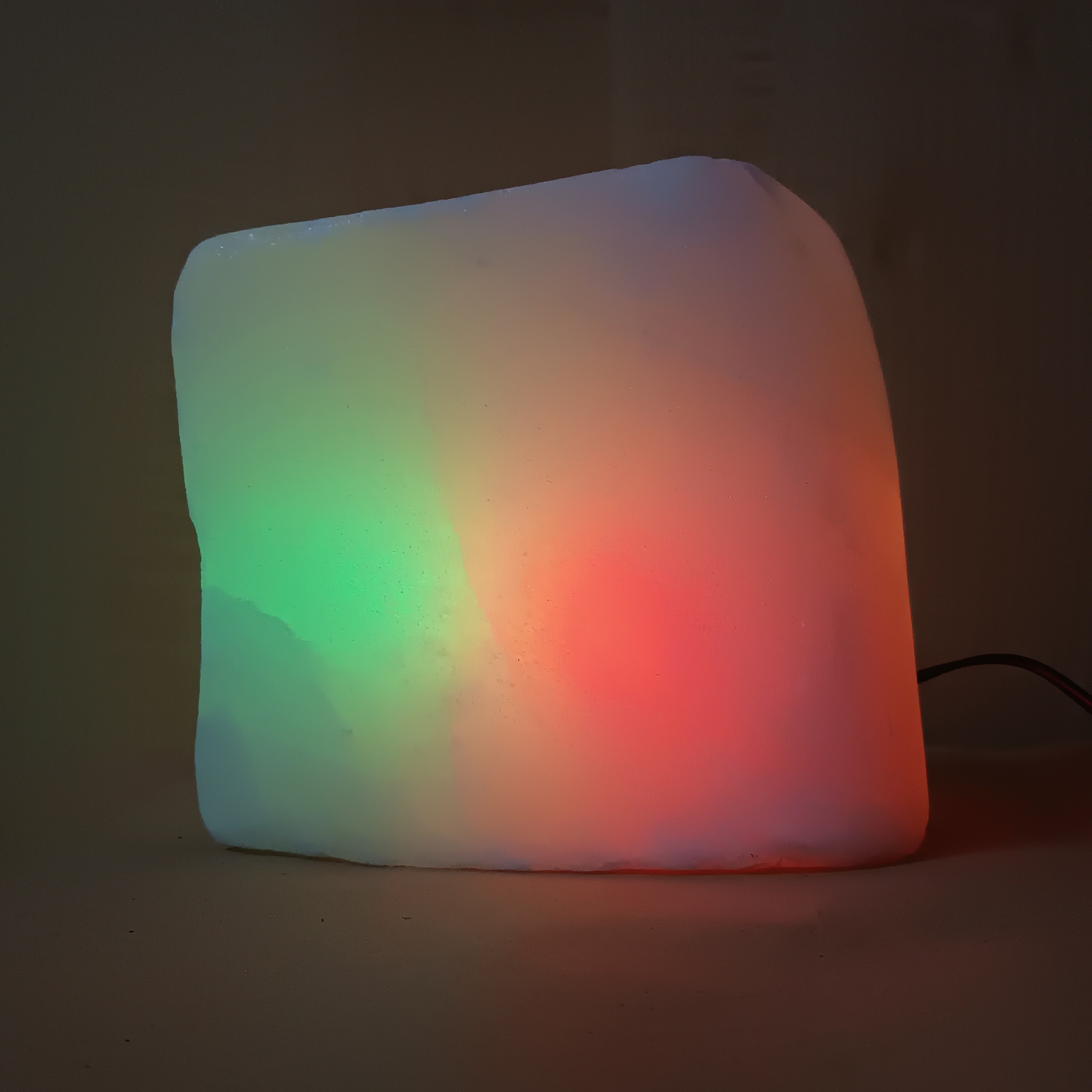 آباژور سنگ نمک هفت رنگ در سایز متوسط که دو طرفه هست و میتونید هم از نمای جلو وهم از نمای بغل آن بهرمند شوید . پشت سنگ کلید وجود دارد که میتوانید به راحتی رنگ های آن را عوض کنید . با کابل USBروشن می شود که هیچ خطر برق گرفتگی ندارد و مصرف برق کمی دارد .