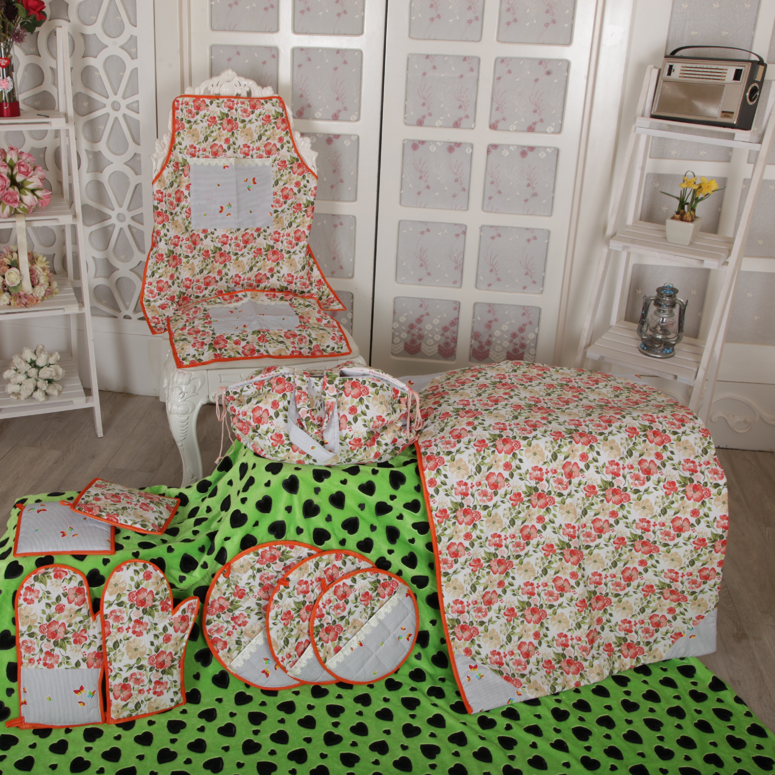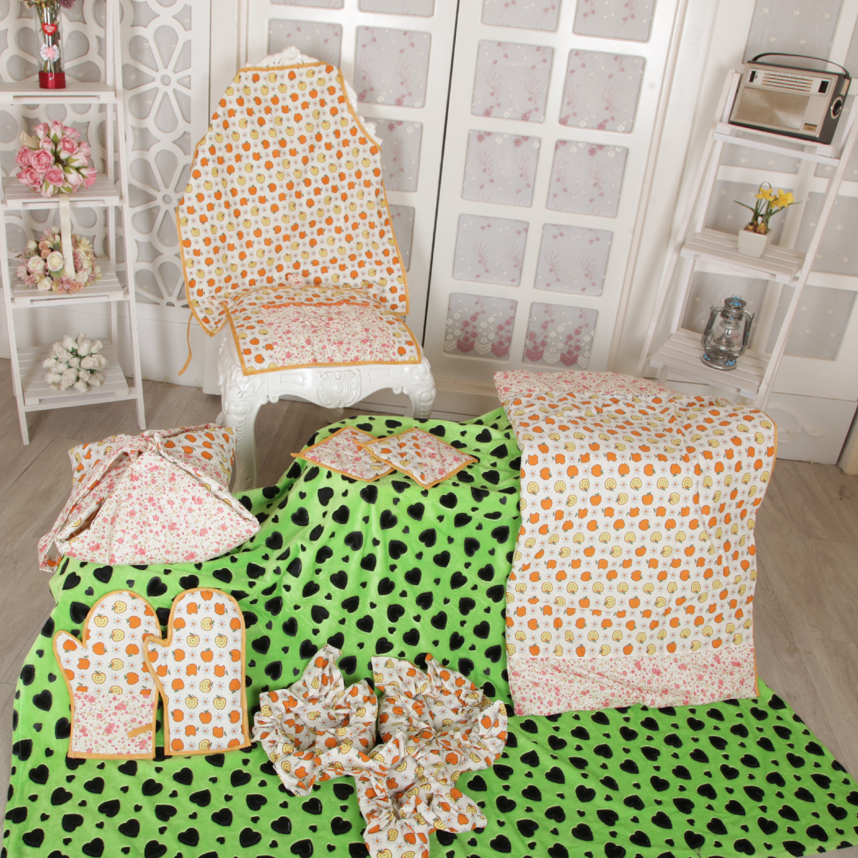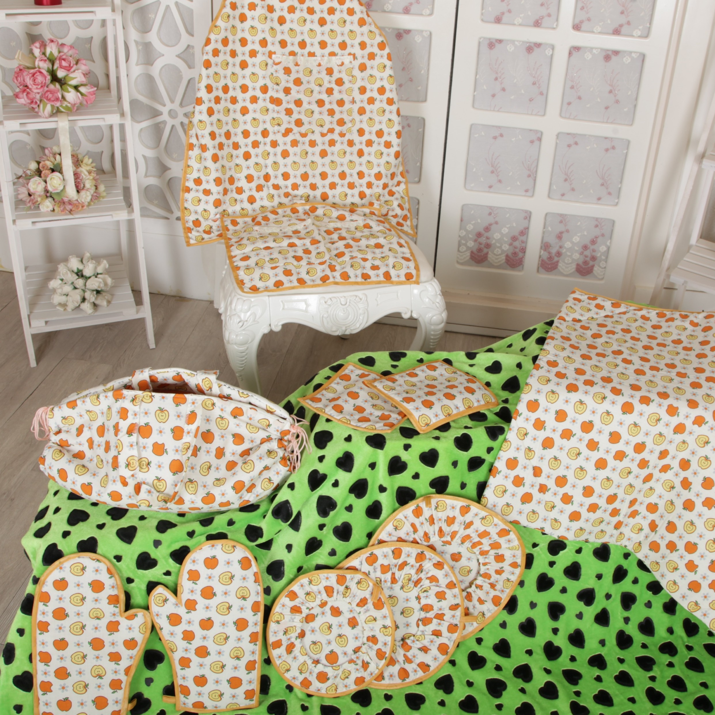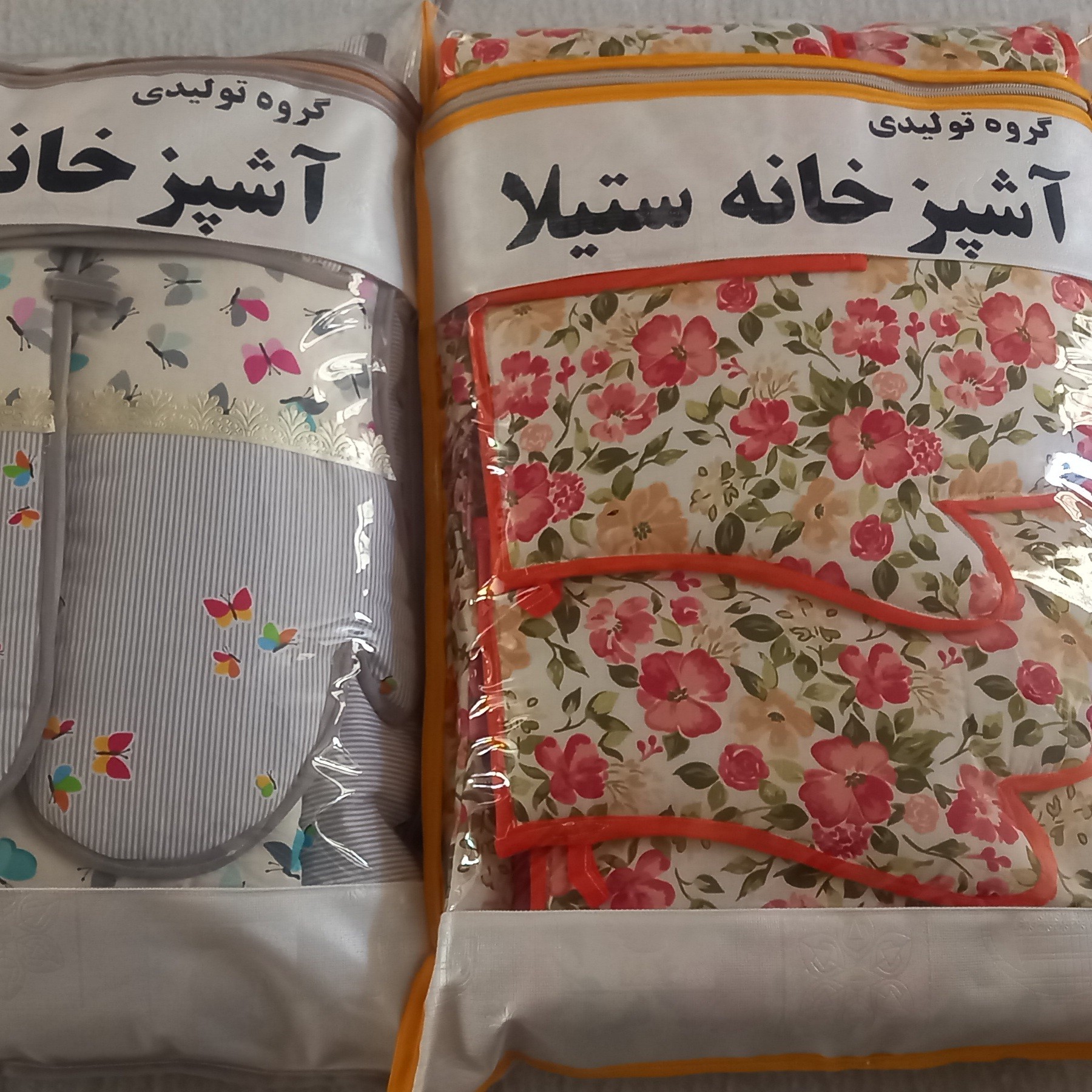 ست 11 تیکه آشپزحانه شامل خشک کن 1متری ست دمکنی 1جفت دستکش فر 1جفت دستگیره پیشبند کاورقابلمه کاور شیشه گاز