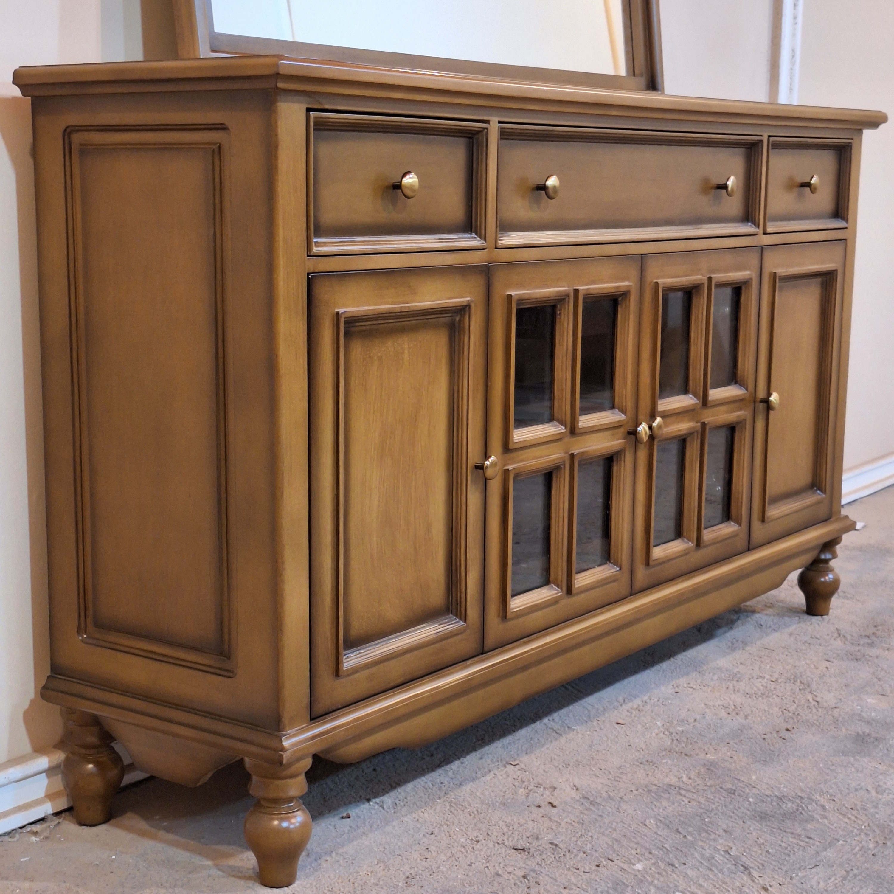 کنسول چوبی کلاسیک قهوه ای با آینه🪞🥰 جادار بودن این کنسول باعث میشه دیگه کمبود فضا برای ظرف و ظروف نداشته باشی😉 همچنین یه آینه خیلی بزرگ که کاملا کاربردیه🫡 ابعاد کنسول : 160/90/40 متریال 🪵 پایه ها چوب روس ، بدنه ام دی اف روکش چوب بلوط ارسال به سراسر کشور داریم🚛 هزینه ارسال به صورت هست و به عهده مشتری عزیز