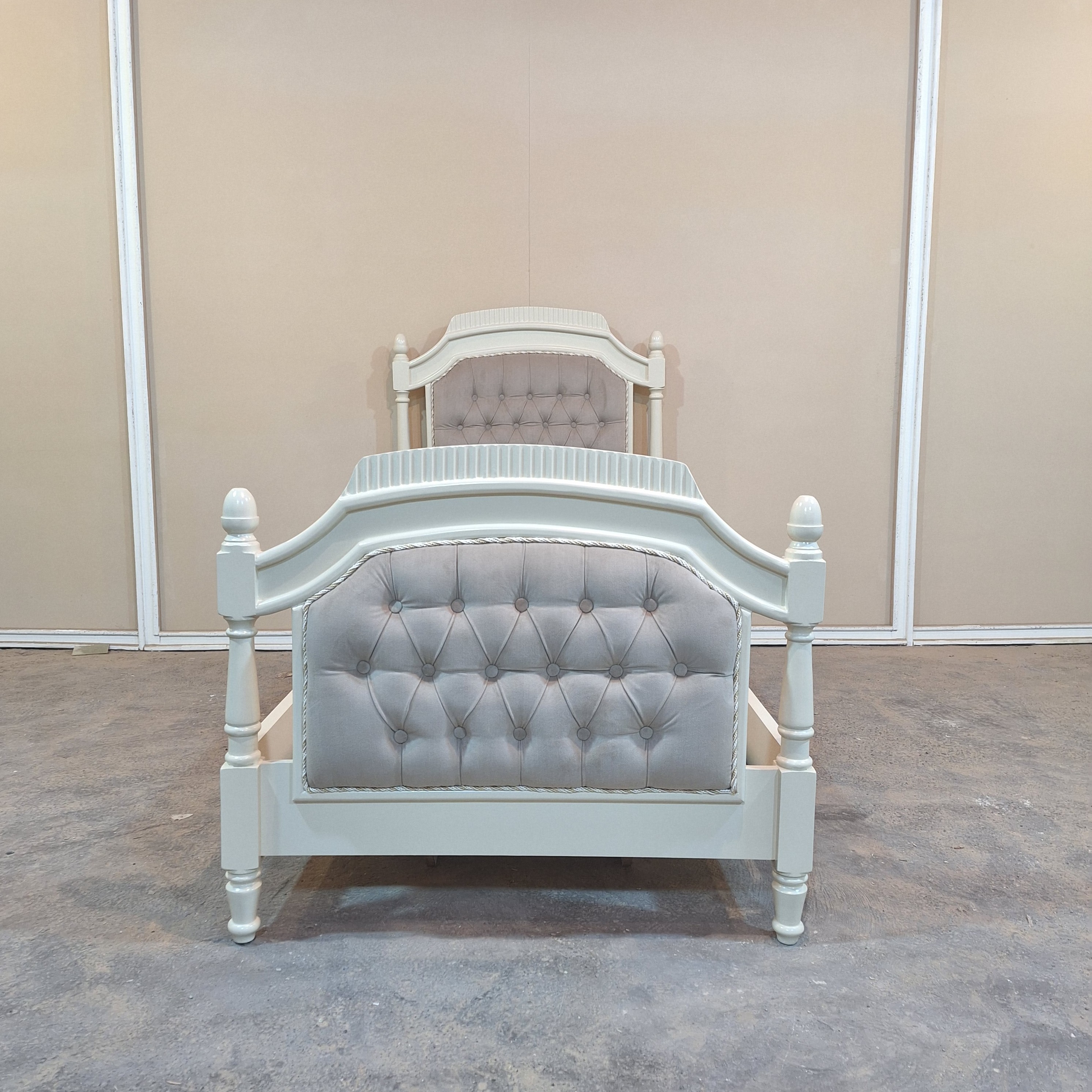 تخت خواب یک نفره کلاسیک پارچه ای سایز 90🛏️ تمامی ظرافت و طرح های این تخت خواب یک نفره با دست انجام شده😍 کار دست اوستا کارهای کارگاه تولیدی ولیعصر 🙂 متریال 🪵 ستون ها و پایه ها چوب روس،بدنه ام دی اف خام ،رنگ پوششی و پلی استر . ابعاد : 90/200 رنگبندی چوب و پارچه سلیقه ای دلخواه خودته🌈 ارسال به سرتاسر کشور داریم و هزینه ارسال به عهده مشتری و به صورت میباشد.