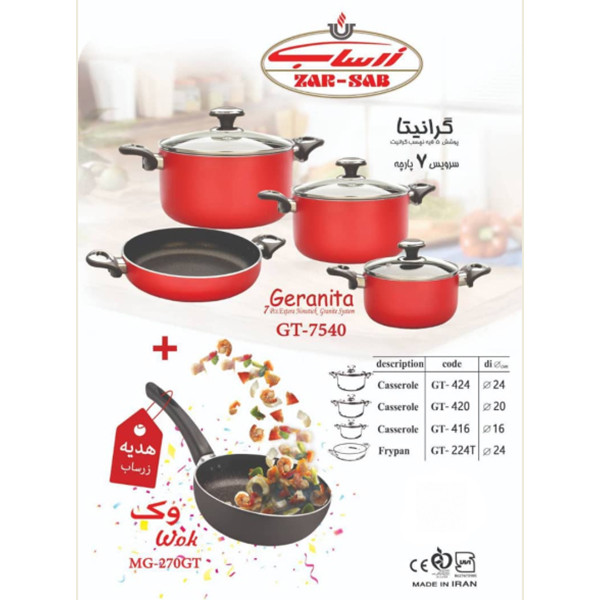 سرویس پخت و پز 7 پارچه مدل گرانیتا به همراه تابه وک هدیه مبلمونسرا مدل 201454