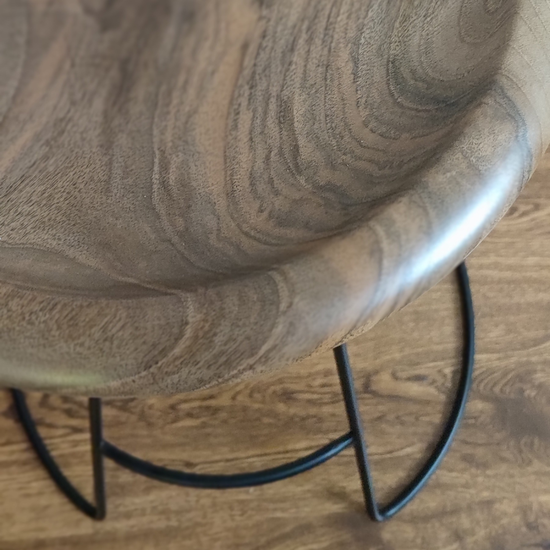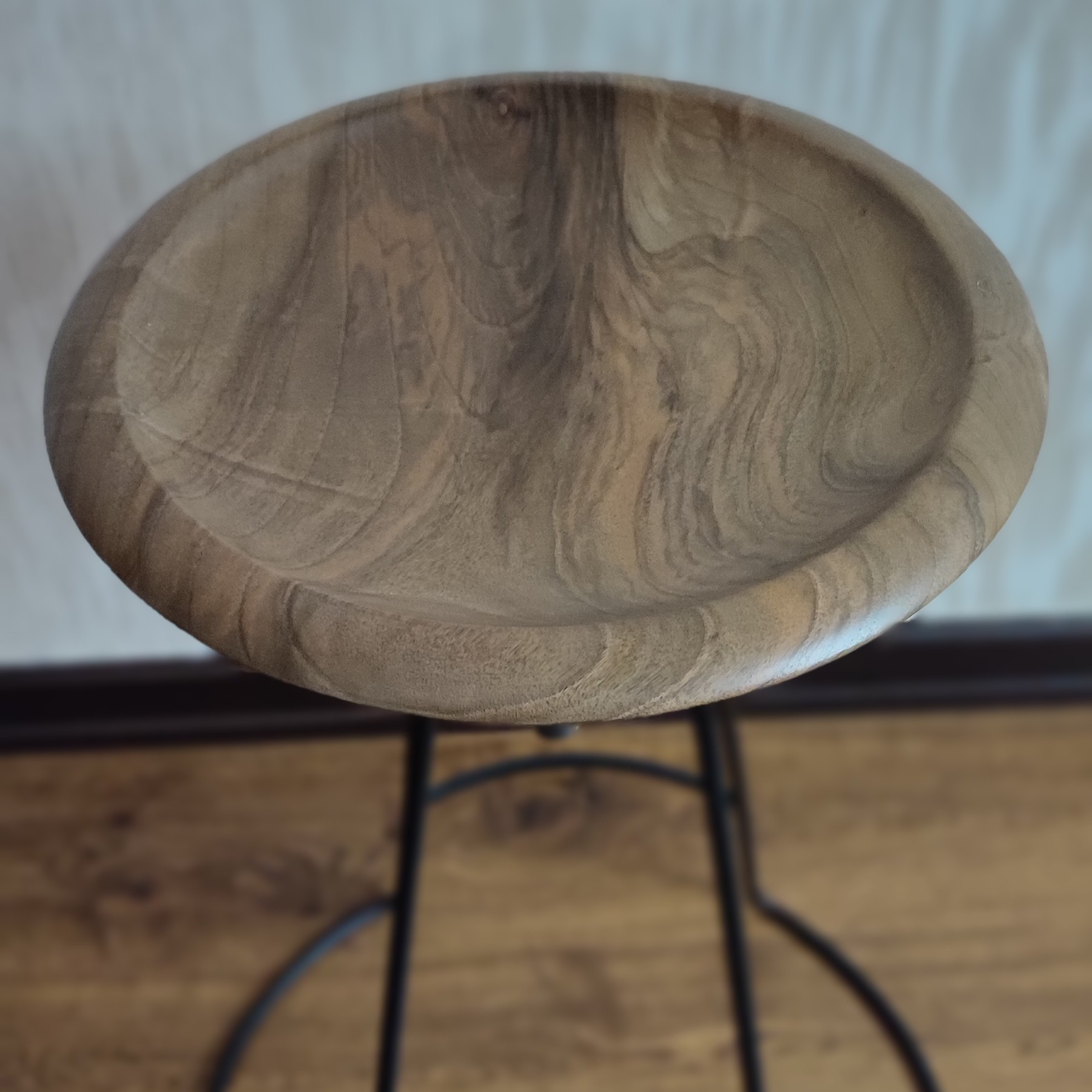 صندلی اپن آشپزخانه پایه قابل تنظیم با نشیمن خراطی شده چوب گردو و پولی اورتان شده