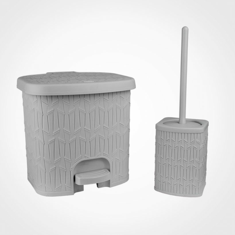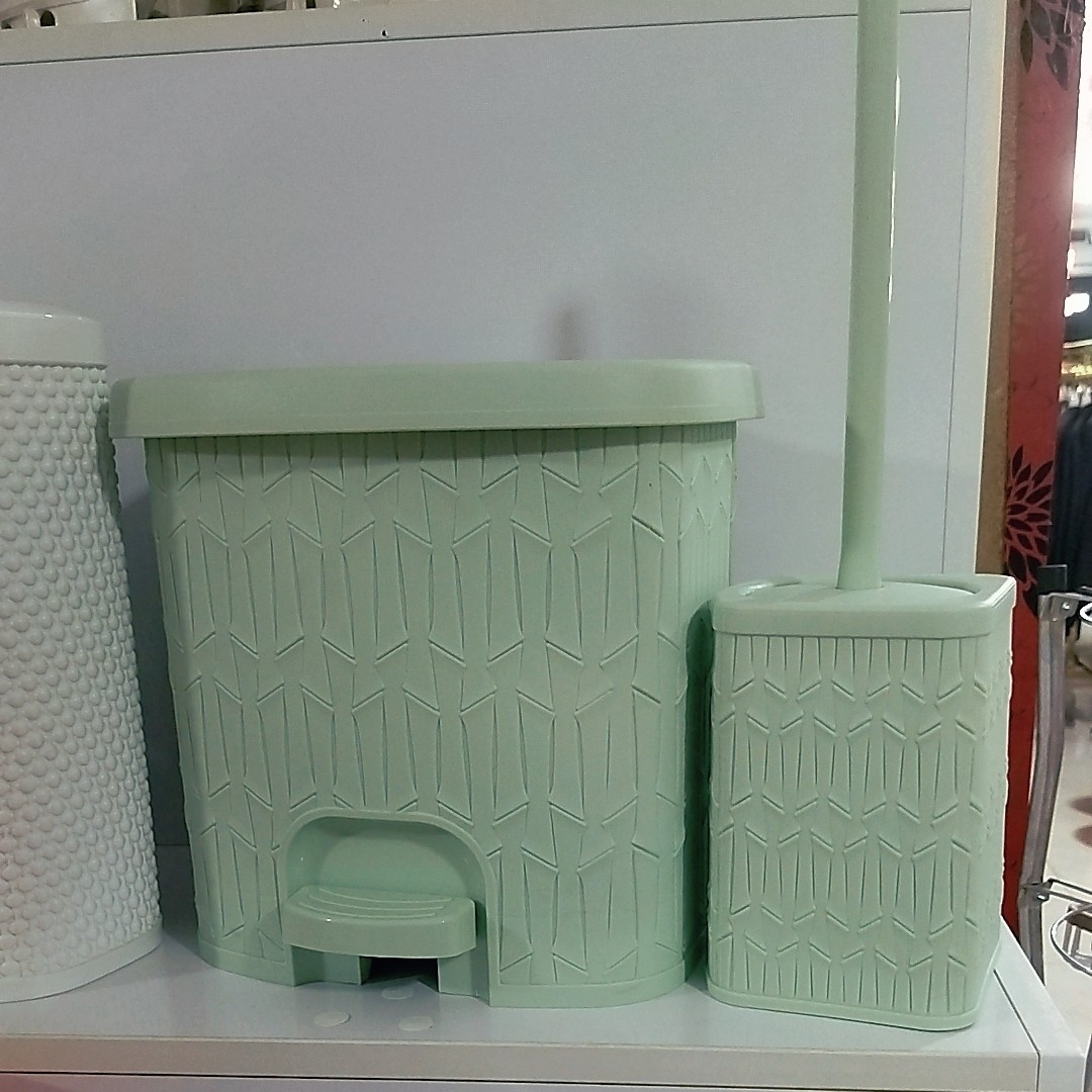سطل زباله و فرچه طرح بامبو متوسط برند لیمون رنگ سبز مبلمونسرا مدل 265645