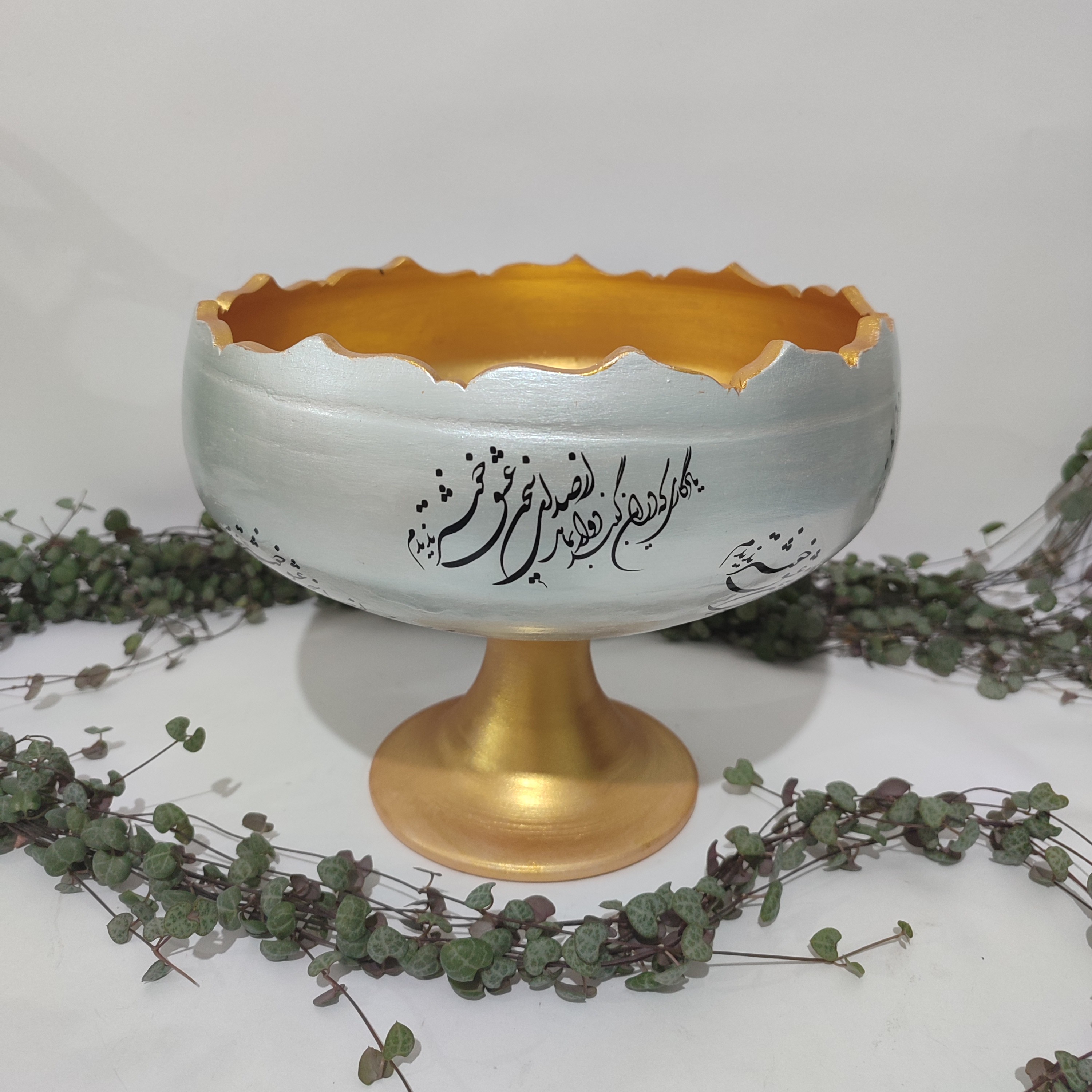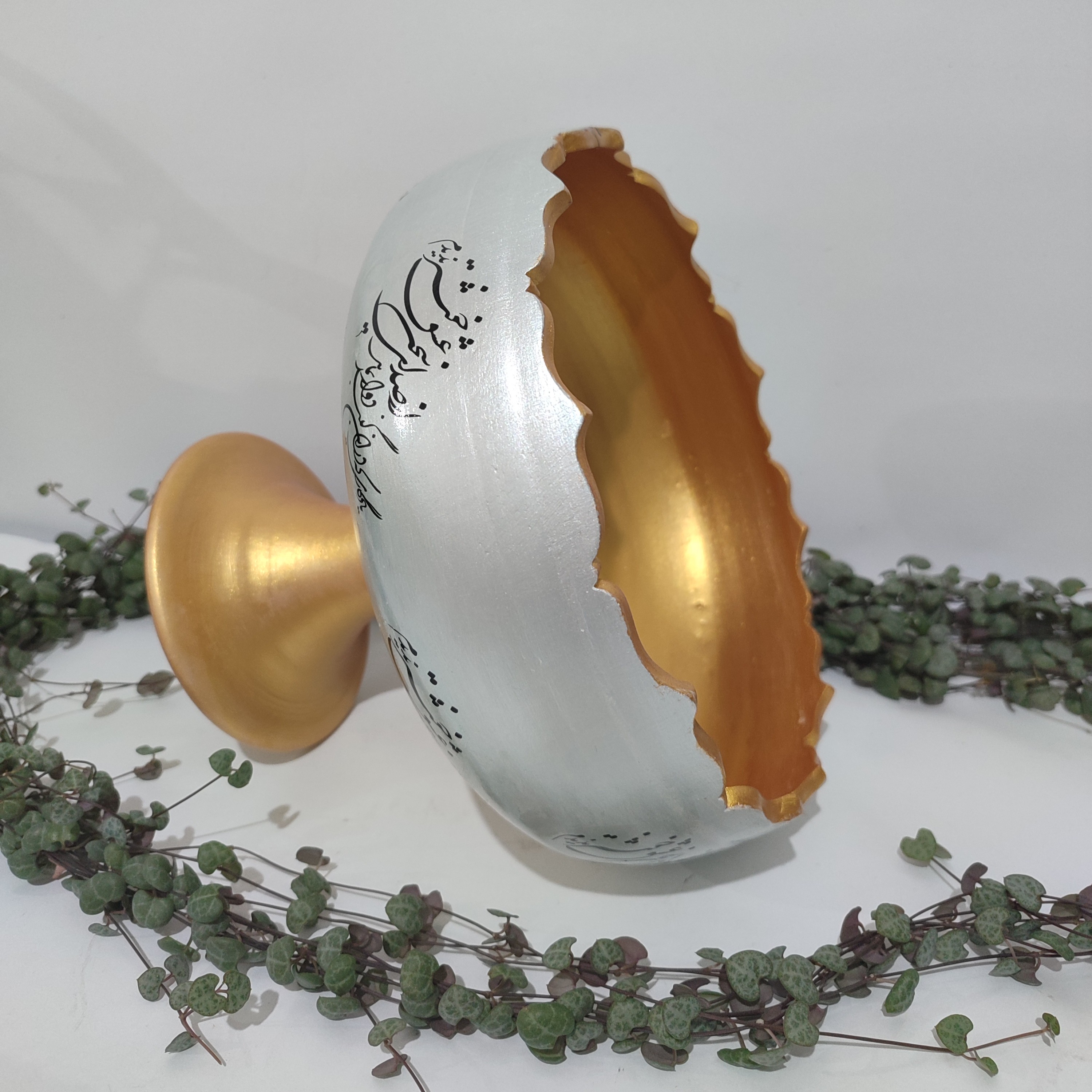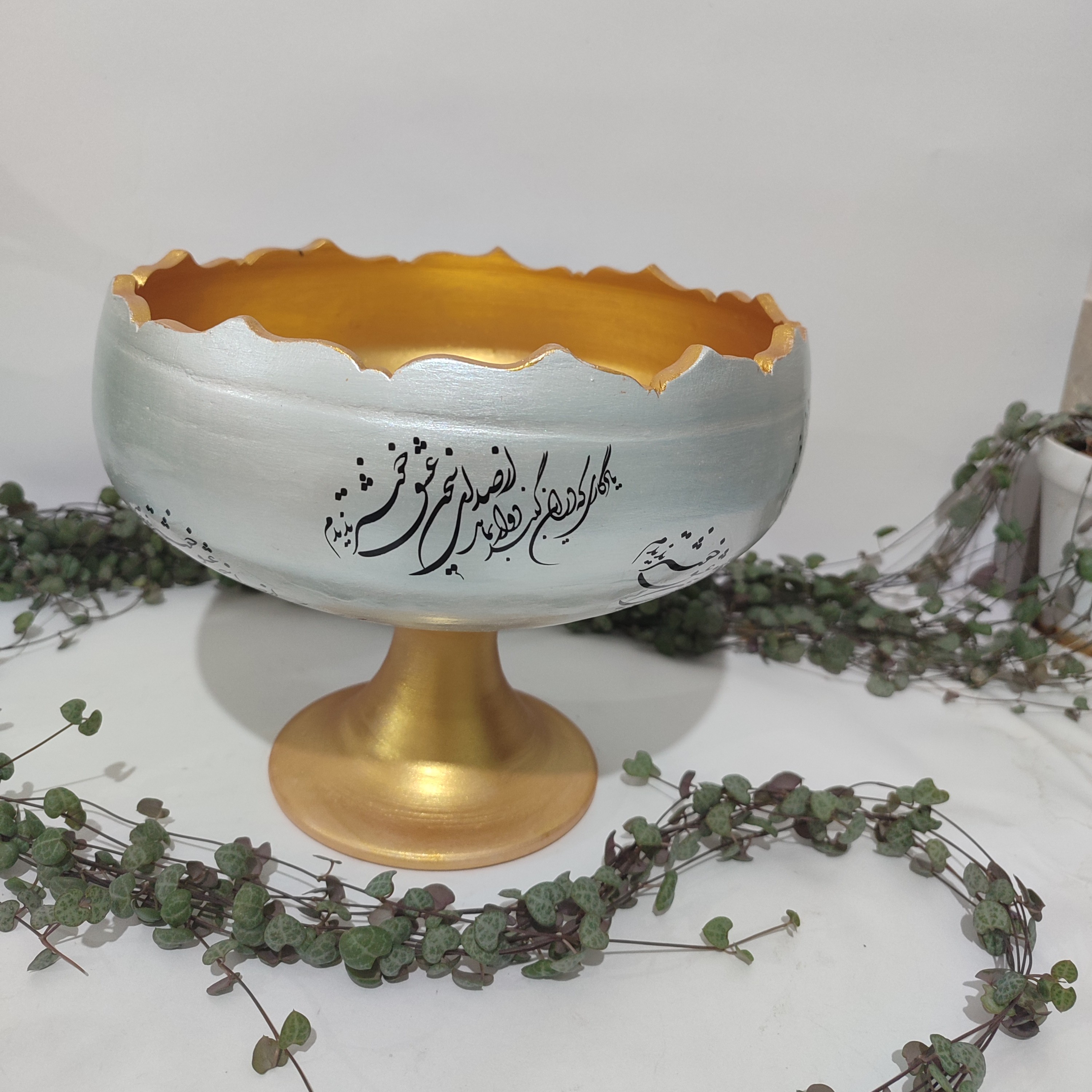آجیل خوری سخن عشق سایز بزرگ کارشده با رنگ اکریلیک سفید صدفی و طلایی کاری زیبا و شیک جهت پذیرایی