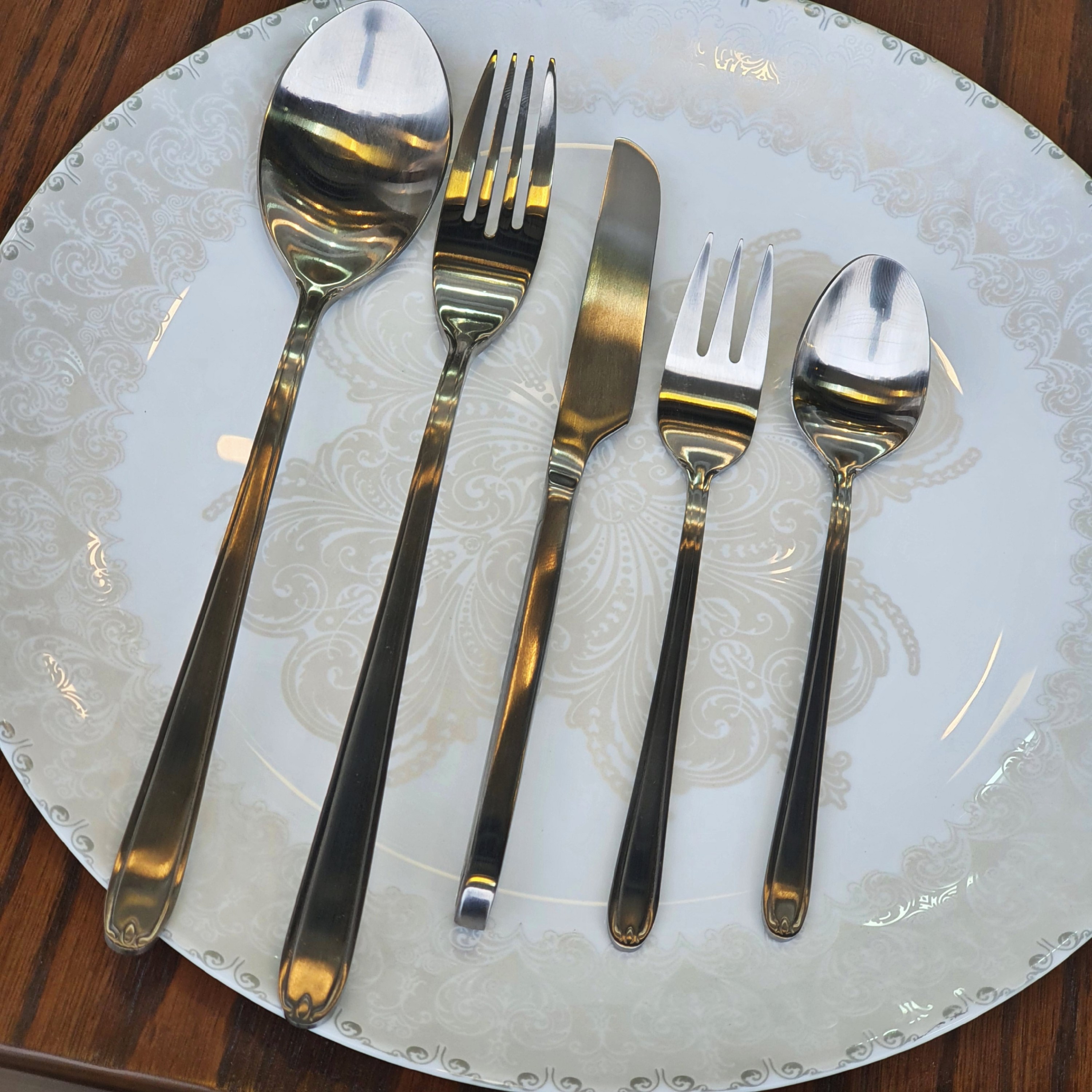 ⭕️سرویس قاشقوچنگال 6 نفره ورسا ستیل مات33پارچه ⚠️موجود تا 4 سری 6نفره 🔻طراحی ارگونومیک 🔻 گارانتی مادام المعر کتبی در برابر تیرگی و سیاه شدن 🔻 قابل شستشو در ماشین ظرفشویی و دست شامل: 🔹️6 عدد قاشق غذا خوری 🔹️6 عدد چنگال غذا خوری 🔹️6 عدد کارد میوه خوری 🔹️6 عدد چنگال میوه خوری 🔹️6 عدد قاشق مربا خوری 🔹️1 عدد کفگیر بزرگ 🔹️1 عدد ملاقه بزرگ 🔹️به همراه یک استند 📦ارسال فوری و رایگان به سراسر کشور