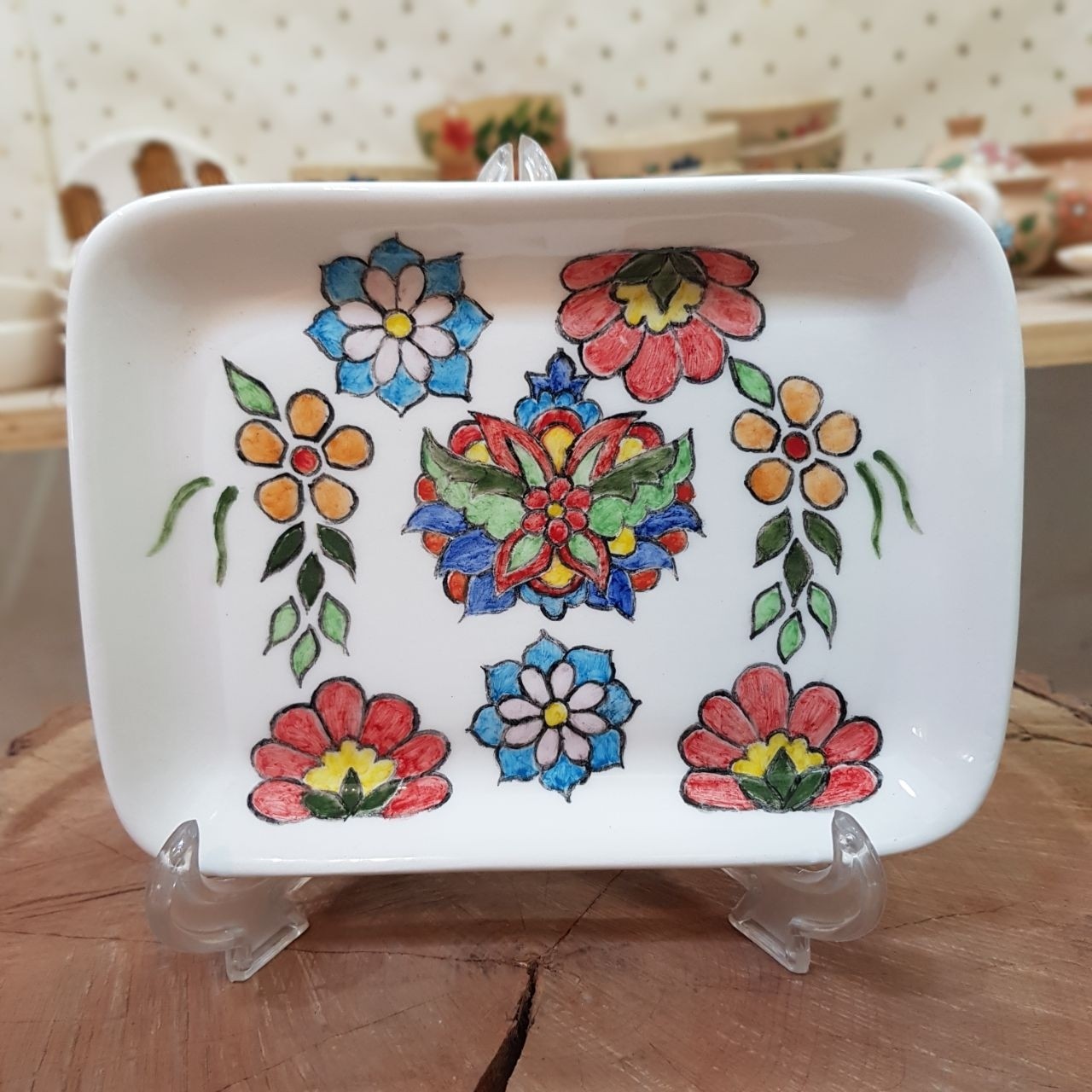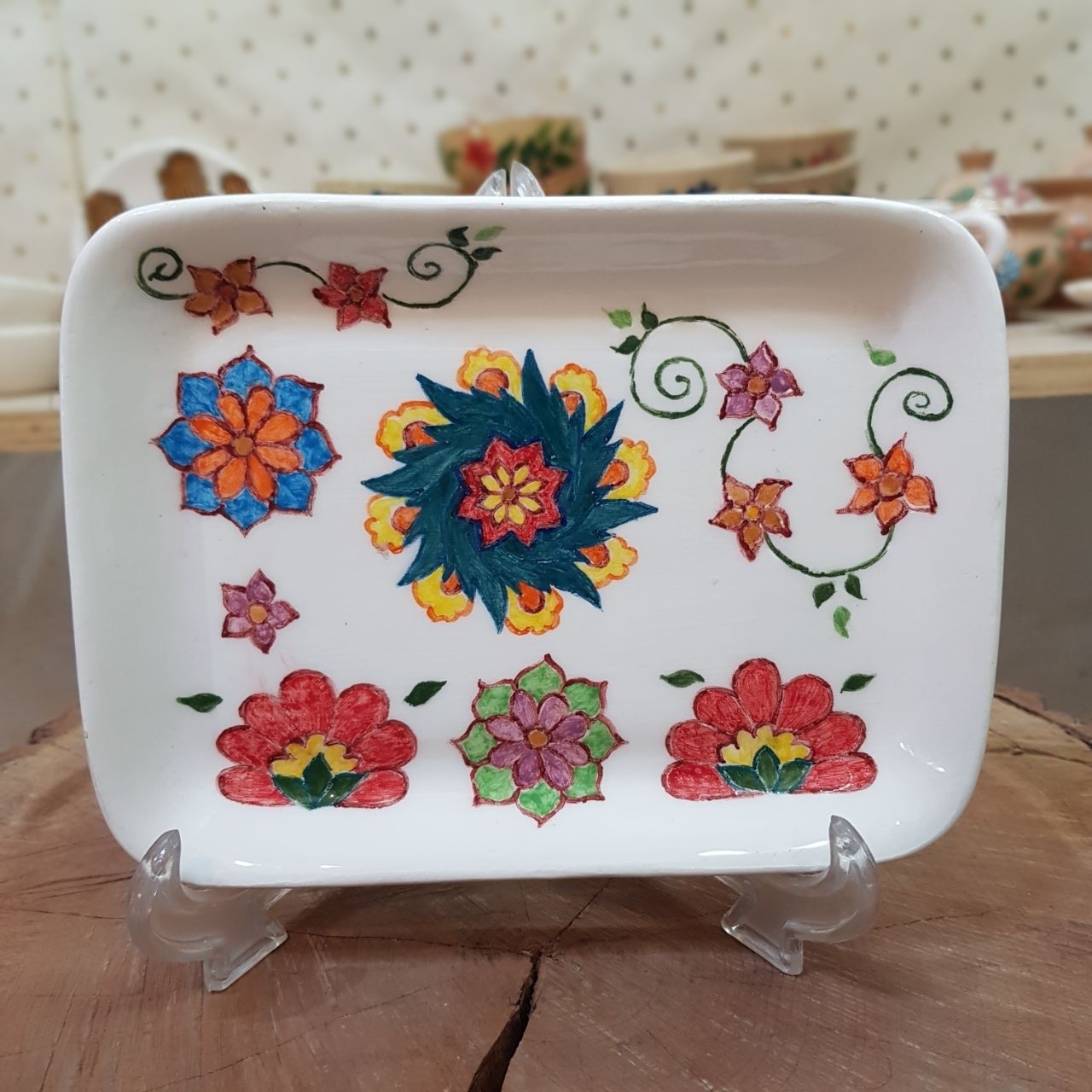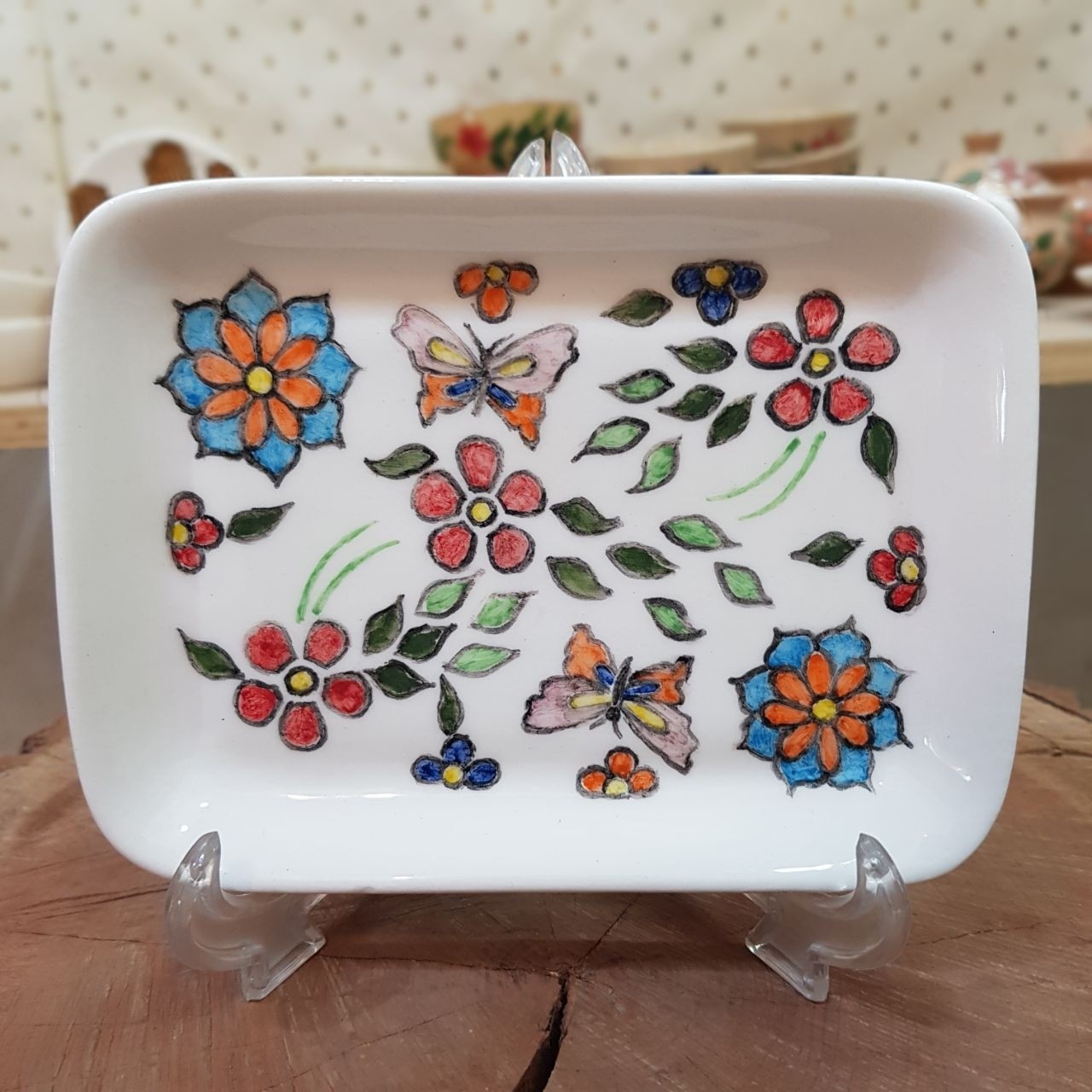 جاقاشقی ، شیرینی خوری یا زیر لیوانی طراحی شده سرامیکی، قابل شستشو، دستسازه، نقاشی با دست انجام شده.