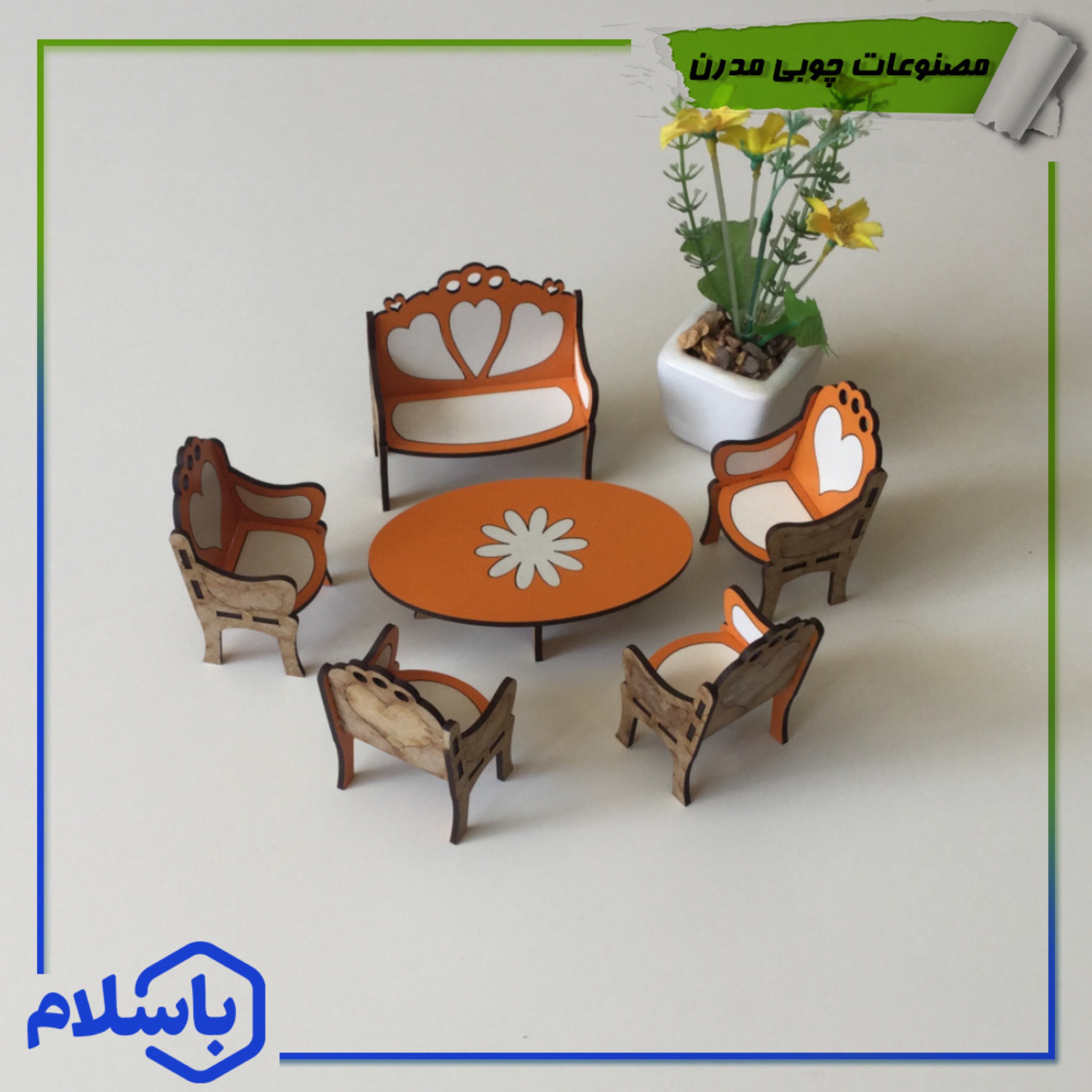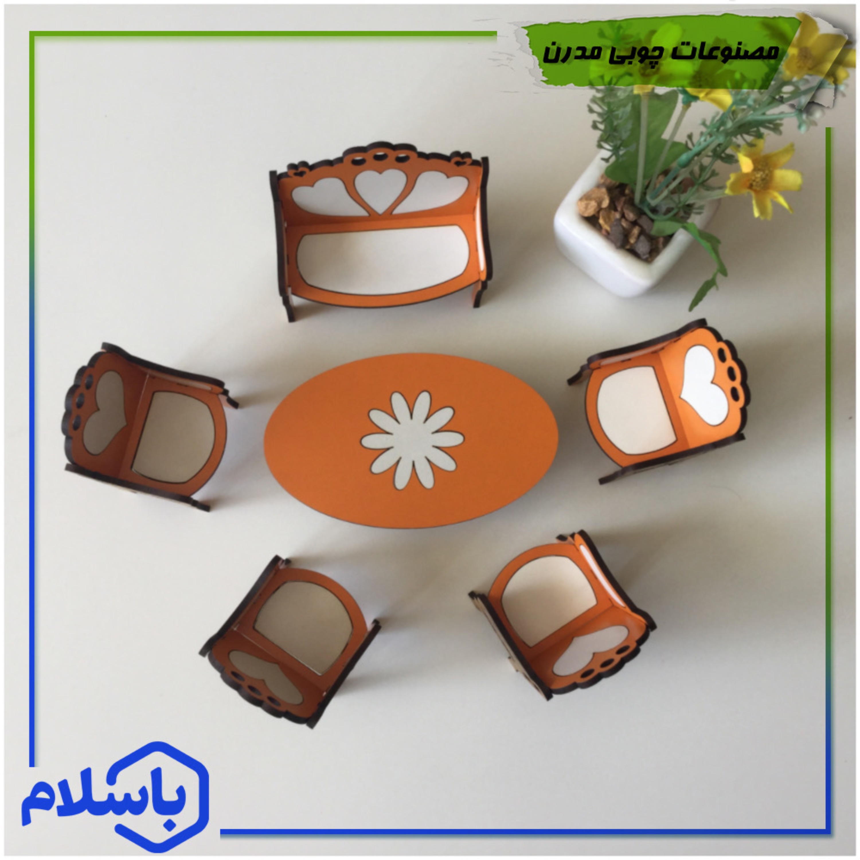 مبلمان چوبی هفت نفره دکوری نارنجی سفید مبلمونسرا مدل 212109
