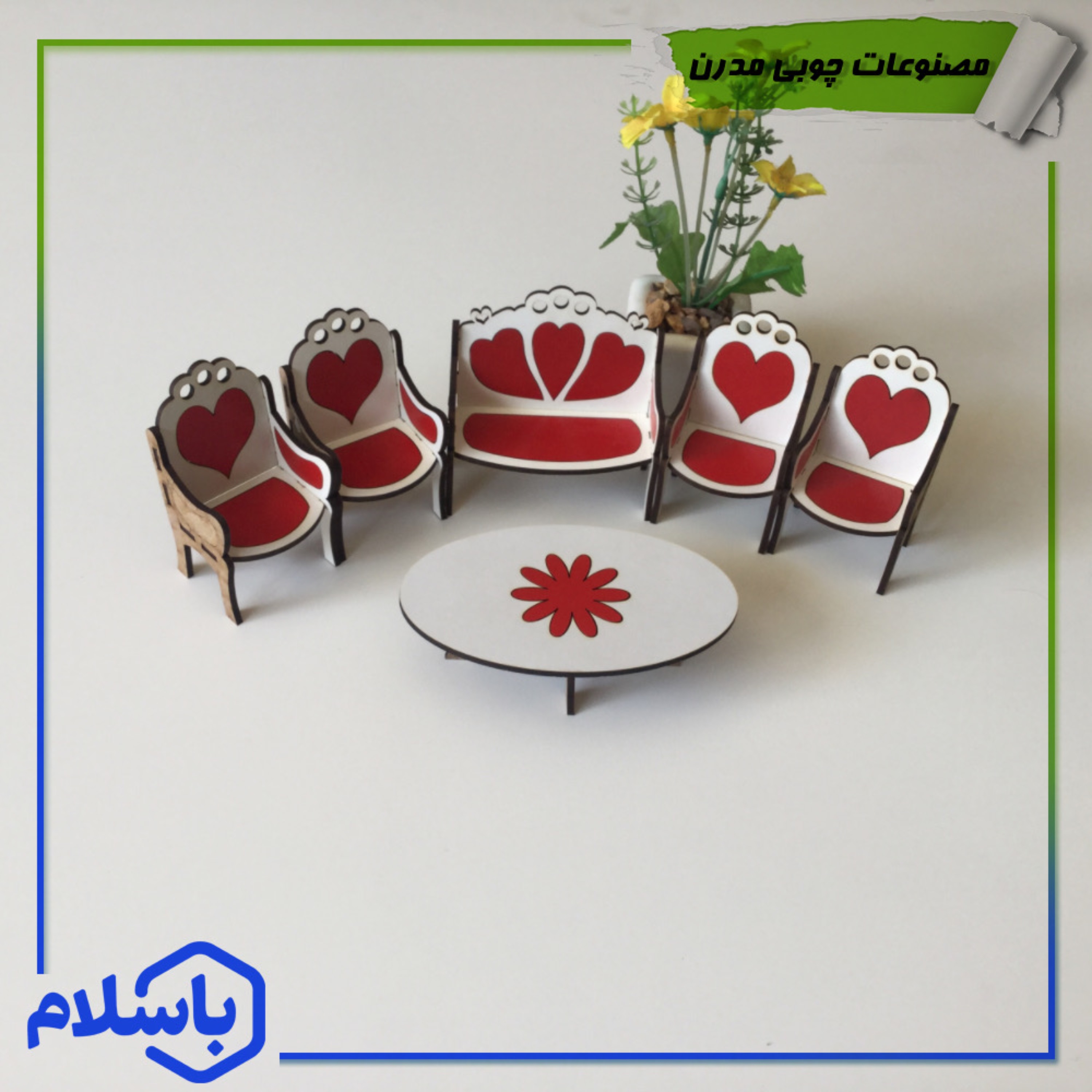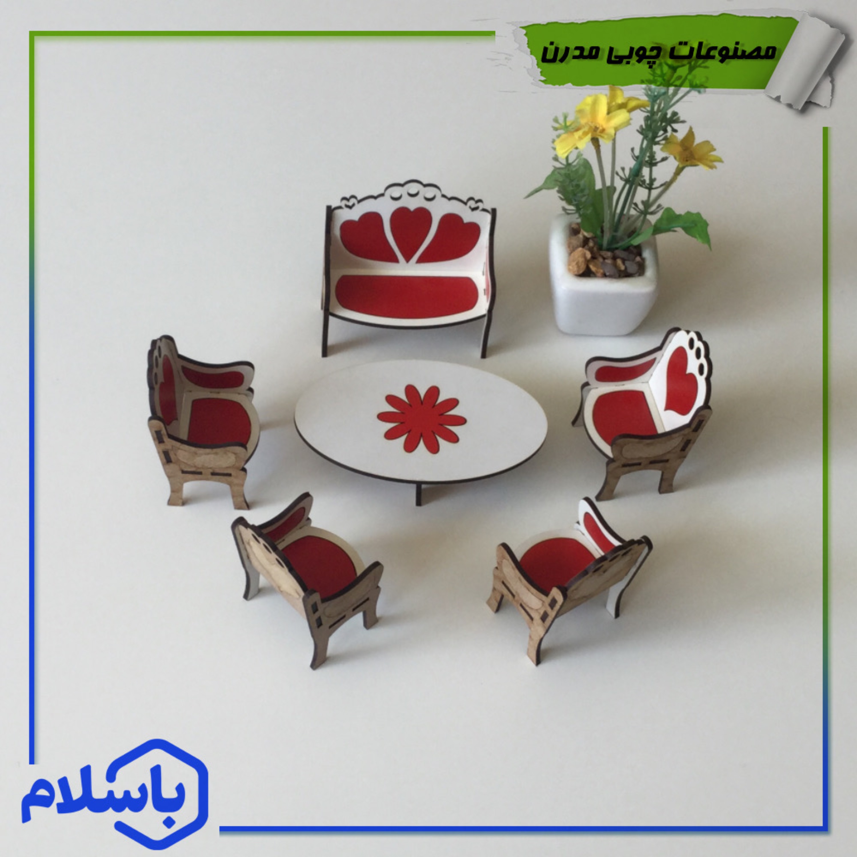 مبلمان چوبی هفت نفره دکوری سفید قرمز مبلمونسرا مدل 211289