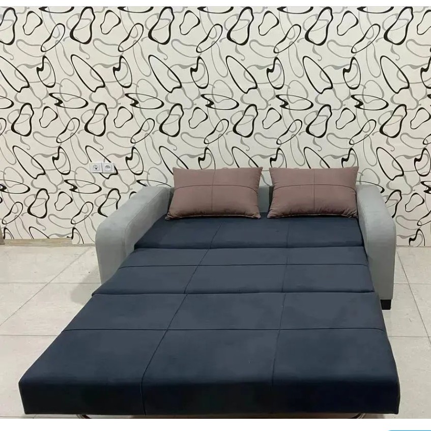 مبل تختخوابشو مدل آلما. دونفر خواب و دونفر نشین . اسکلت کار تماما فلری، دارای ضمانت دوساله، تشک کار اسفنج ۳۰ کیلیویی با تراکم بالا و رنگبندی قابل تغییر