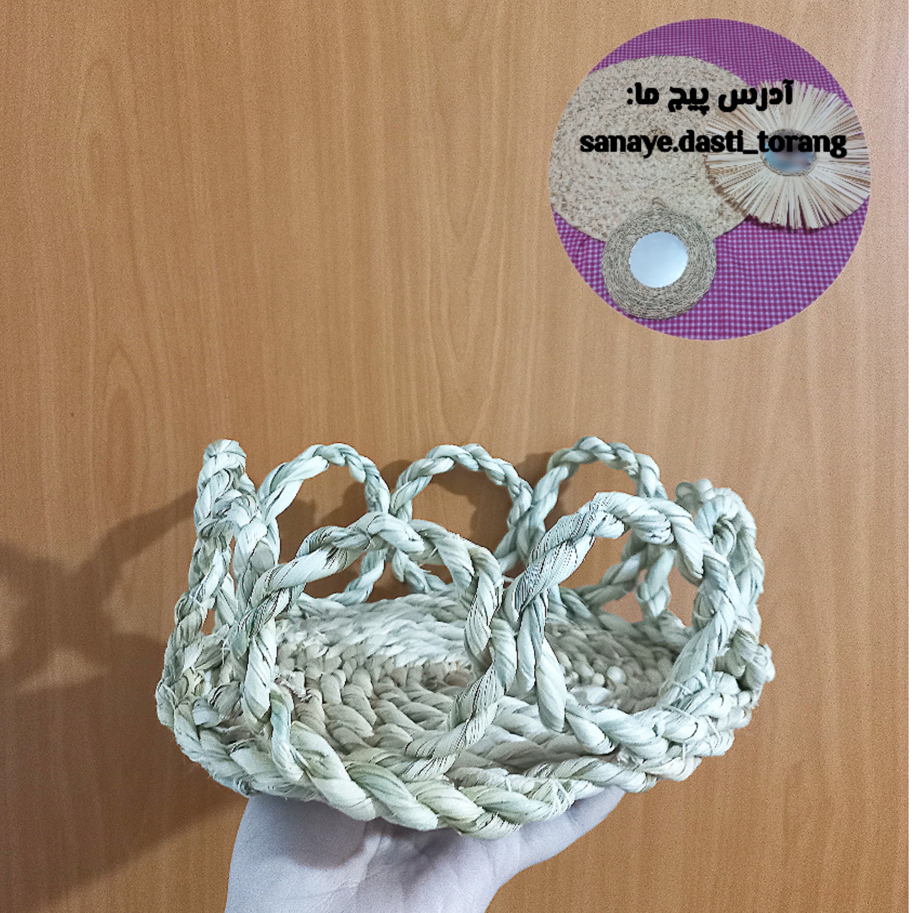 سبد حصیری مدل توری مناسب پذیرایی از مهمون سبد میوه حصیری محکم قابل شستشو بافت مخفی