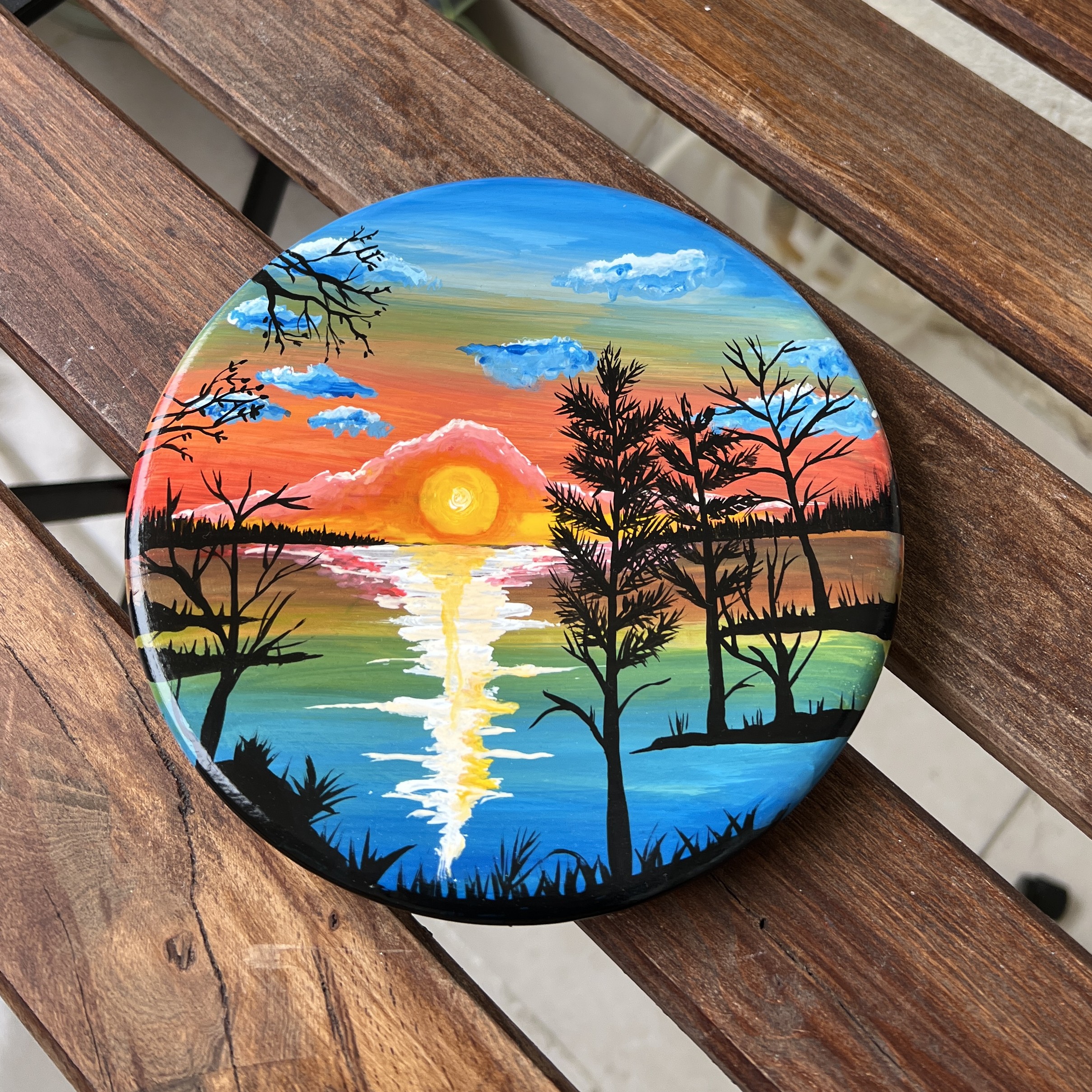 بشقاب دیوارکوب قطر 15سانتیمتر طرح منظره،قابل شستشو،کاردست،رنگ شده با رنگ اکریلیک و تثبیت کننده قوی مبلمونسرا مدل 267447