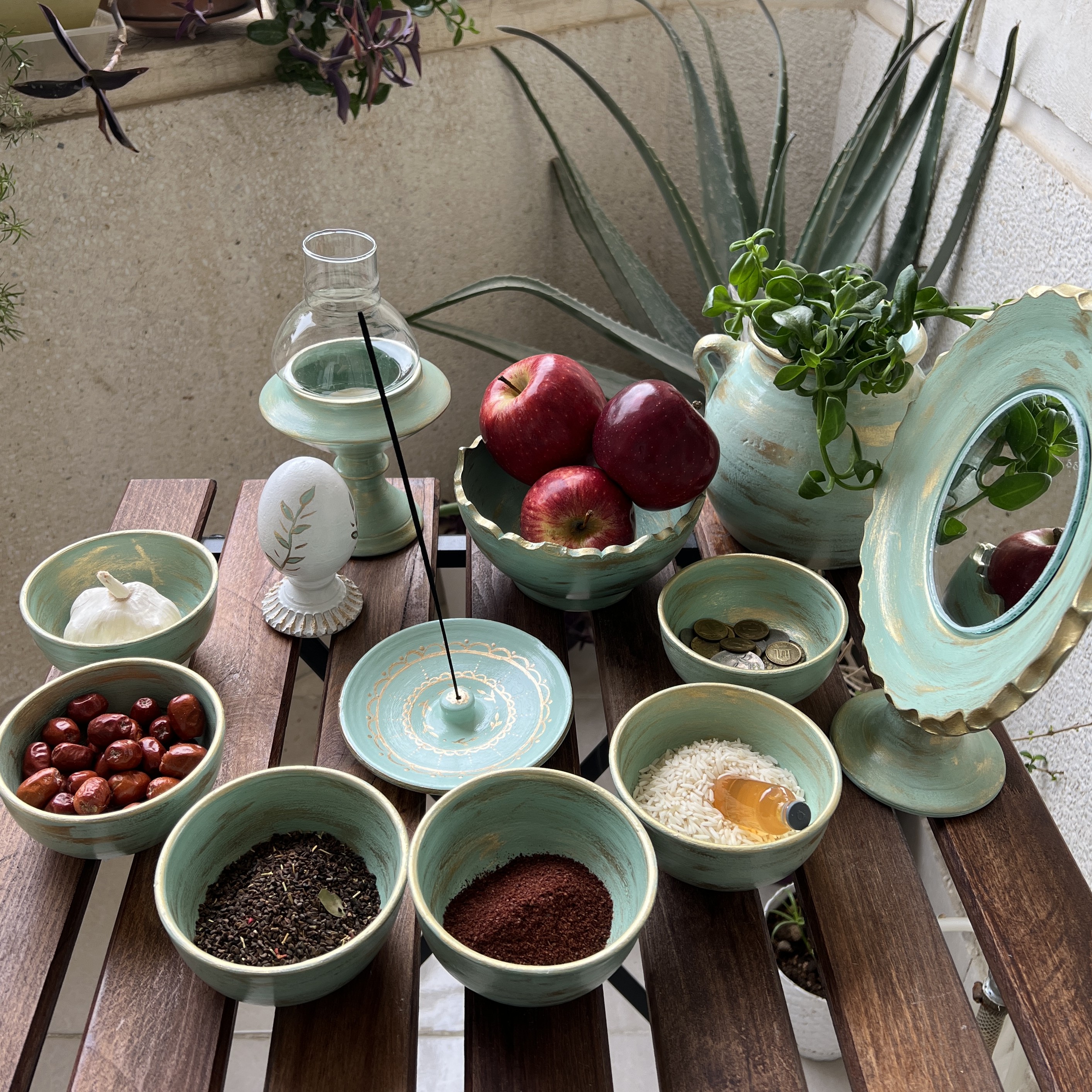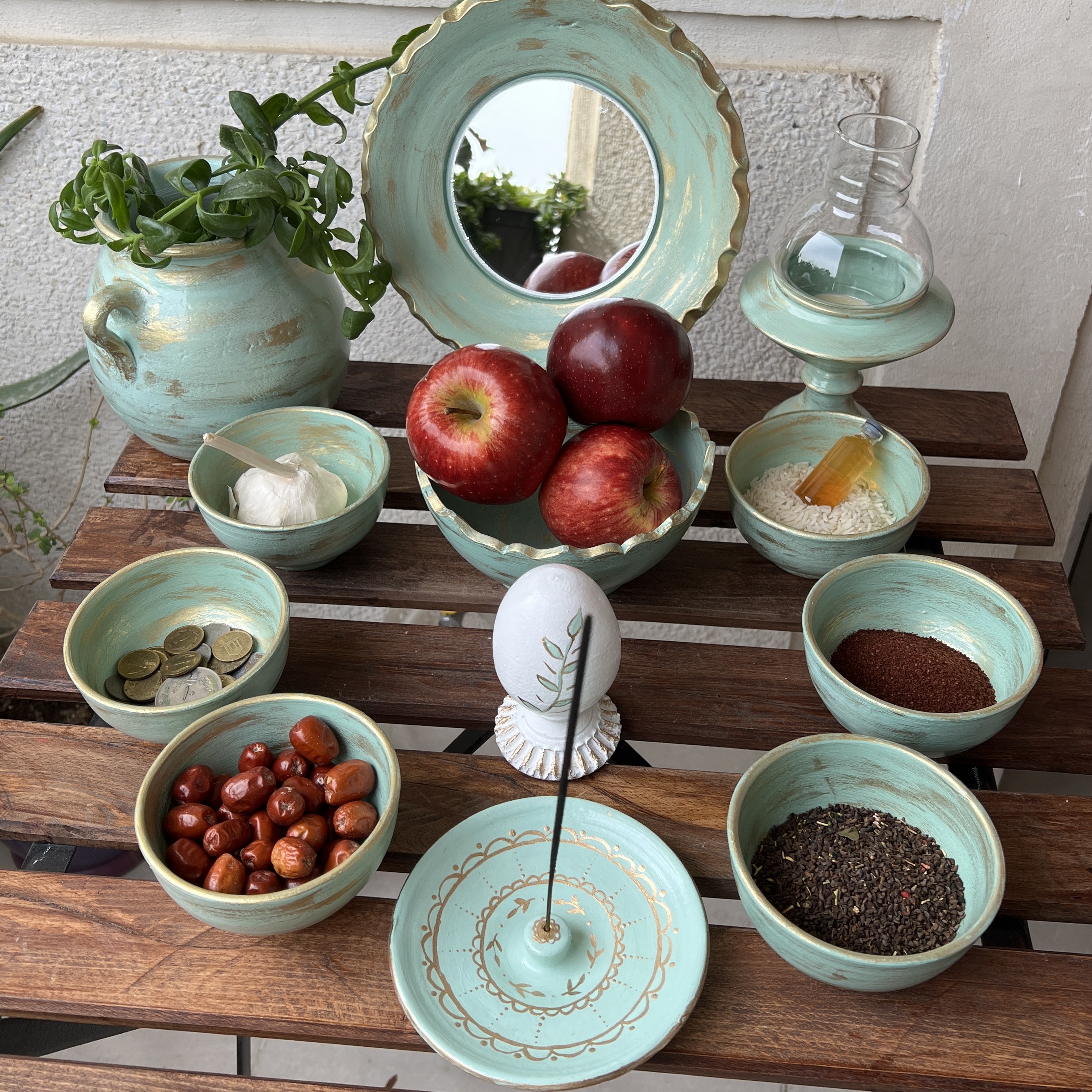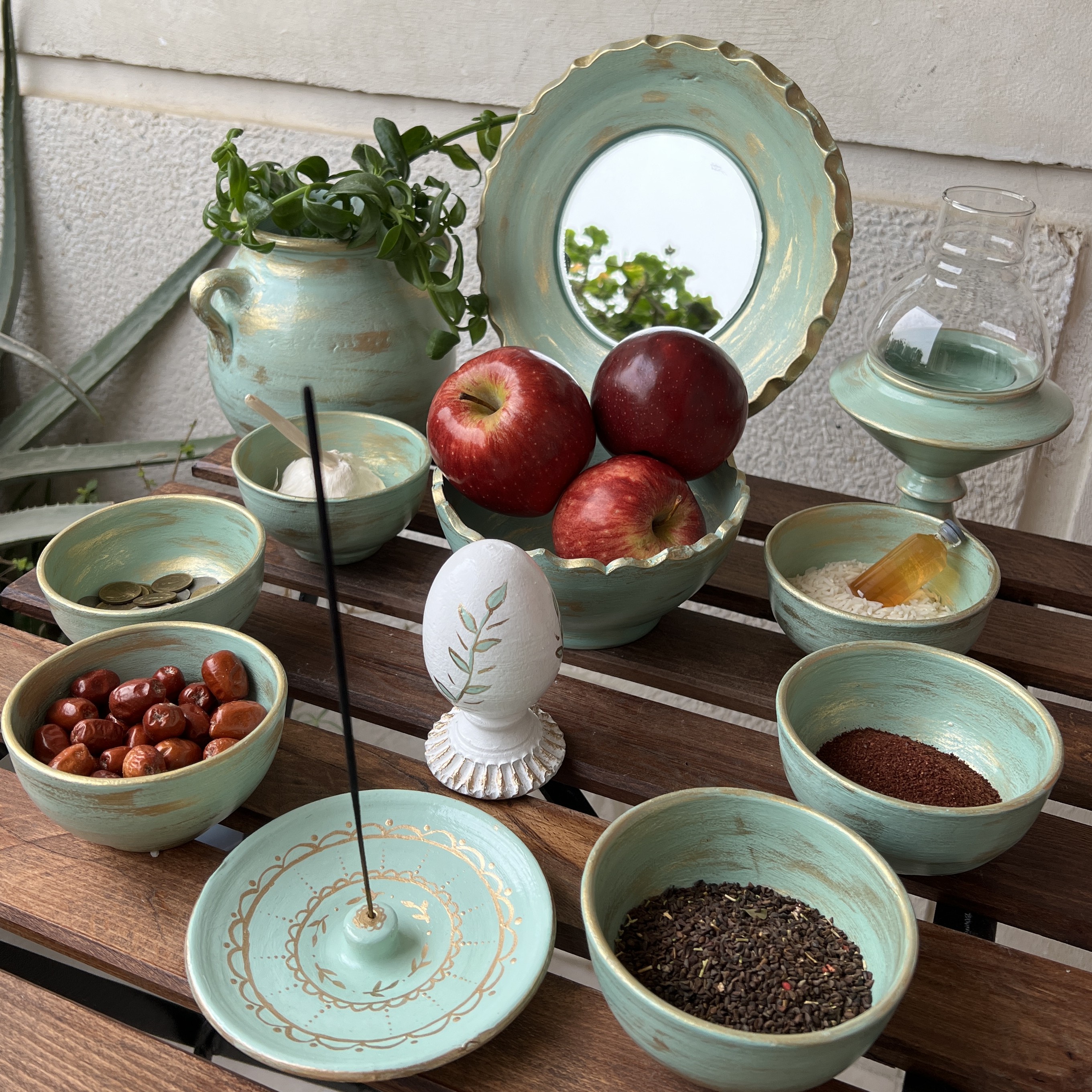 هفت سین پتینه شده دوازه تیکه طراحی شده با پتینه شده با رنگ اکریلیک قابل شستشو مبلمونسرا مدل 259015