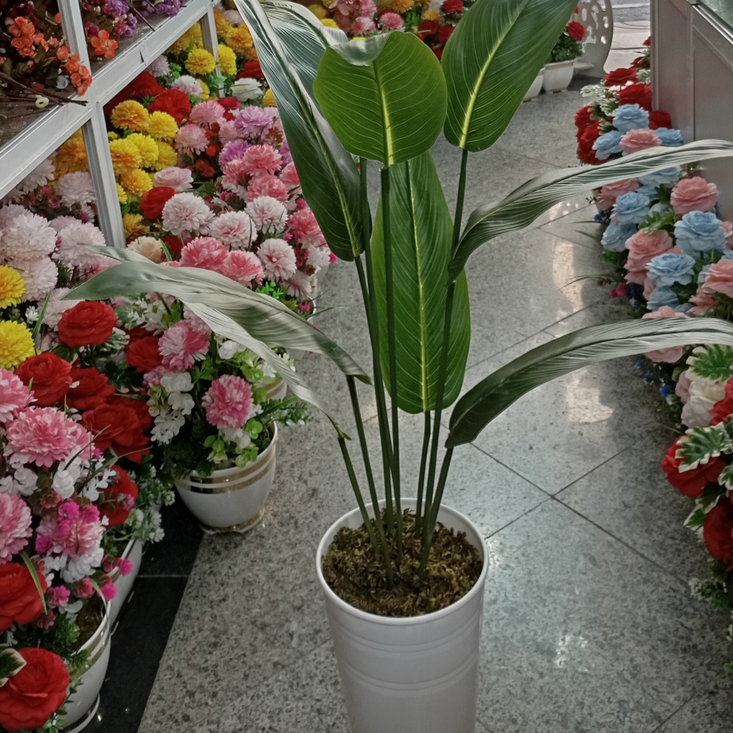 گل مصنوعی پرنده بهشتی مشابه طبیعی وارداتی بسیارباکیفیت لمسی قدکار130به همراه گلدان پلاستیک فشرده بانمای سرامیک مبلمونسرا مدل 258741