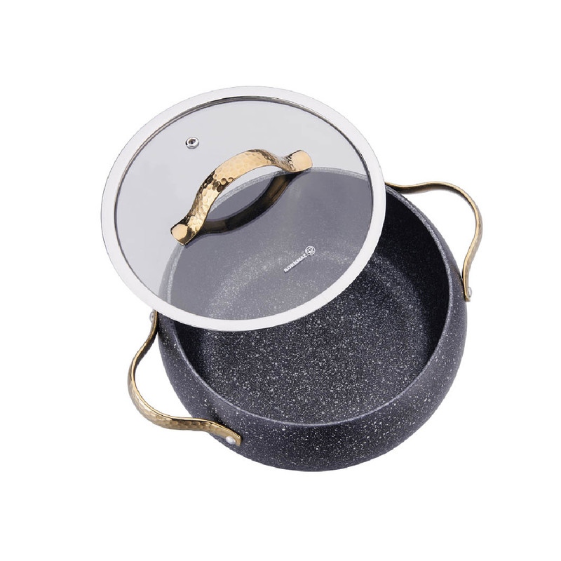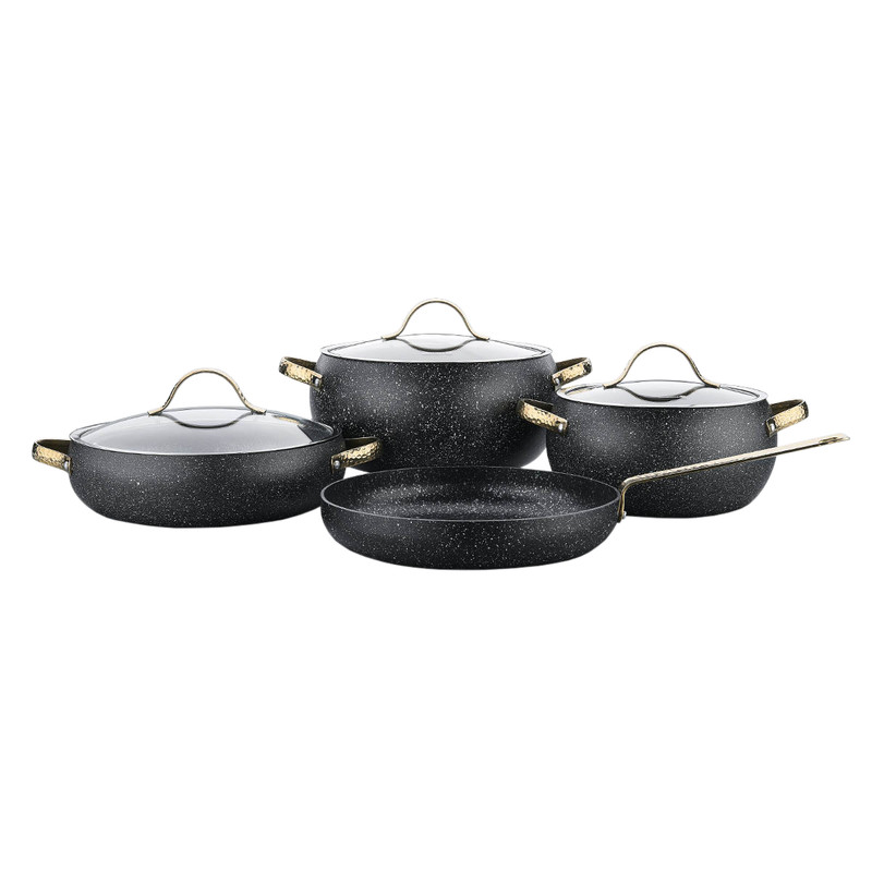 -این سرویس قابلمه شامل قابلمه 20x11 سانتی متر قابلمه 24x12.4 سانتی متر نیم قابلمه 26x7.5 سانتی متر ماهیتابه 26x4.5 سانتی متر میباشد - پوشش داخلی:از جنس گرانیت بسیار مقاوم PTFE (گرانیت)با ظاهری آتشفشانی با خاصیت عالی نچسب در سطوح داخلی - مقاومت و مقاومت بیشتر در برابر خراشیدن - توزیع گرما یکنواخت به لطف بدنه آلومینیوم - پخت و پز بدون گاز سمی (PFOA ، استادیوم یا بدون سرب) - ماده اولیه پوشش سخت و آتشفشانی با تکنولوژی برتر آلمان در آلمان تولید می شود.(از مواد کاملاً طبیعی و با فناوری سازگار با محیط زیست تولید شده ، با استفاده از روغن بسیار کمی با پوشش PTFE گرانیت و مقاومت در برابر پوشش خارجی سیلیکون ، غذاهای خوشمزه درست می کند