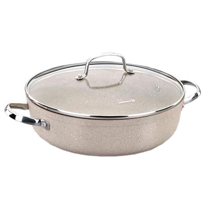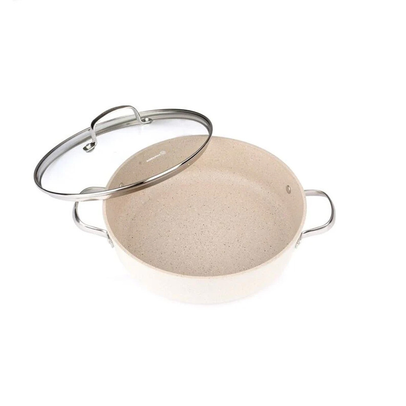 سرویس پخت و پز 7 پارچه مدل A1272، محصولی با کیفیت ساخت بالا از برند معتبر ترکیهای است که برای ارتقای تجربه آشپزی شما طراحی شده است. ساختار بدنه این ظروف از آلومینیوم ساخته شده که به پخش سریع و یکنواخت حرارت کمک شایانی میکند. روکش داخلی آنها از جنس گرانیت است که علاوه بر ایجاد یک سطح کاملاً نچسب برای آشپزی آسان و سالم، مقاومت بالایی در برابر خط و خش دارد. یکی از ویژگیهای برجسته این سرویس، دستههای استیل آن است؛ این دستهها به صورت پرچ شده به بدنه متصل شدهاند که استحکام و دوام فوقالعادهای را تضمین میکند. این مجموعه ۷ پارچه شامل دو قابلمه در سایزهای ۲۰ و ۲۴ سانتیمتر و دو تابه کاربردی در سایز ۲۶ سانتیمتر به همراه درهای مخصوص است که برای انواع پخت و پز مناسب هستند. این سرویس با اجاق گاز سازگاری کامل دارد. در نهایت، سرویس پخت و پز مدل A1272 با ترکیب کیفیت ساخت بالا و عملکرد نچسب، یک انتخاب عالی برای هر آشپزخانهای است.