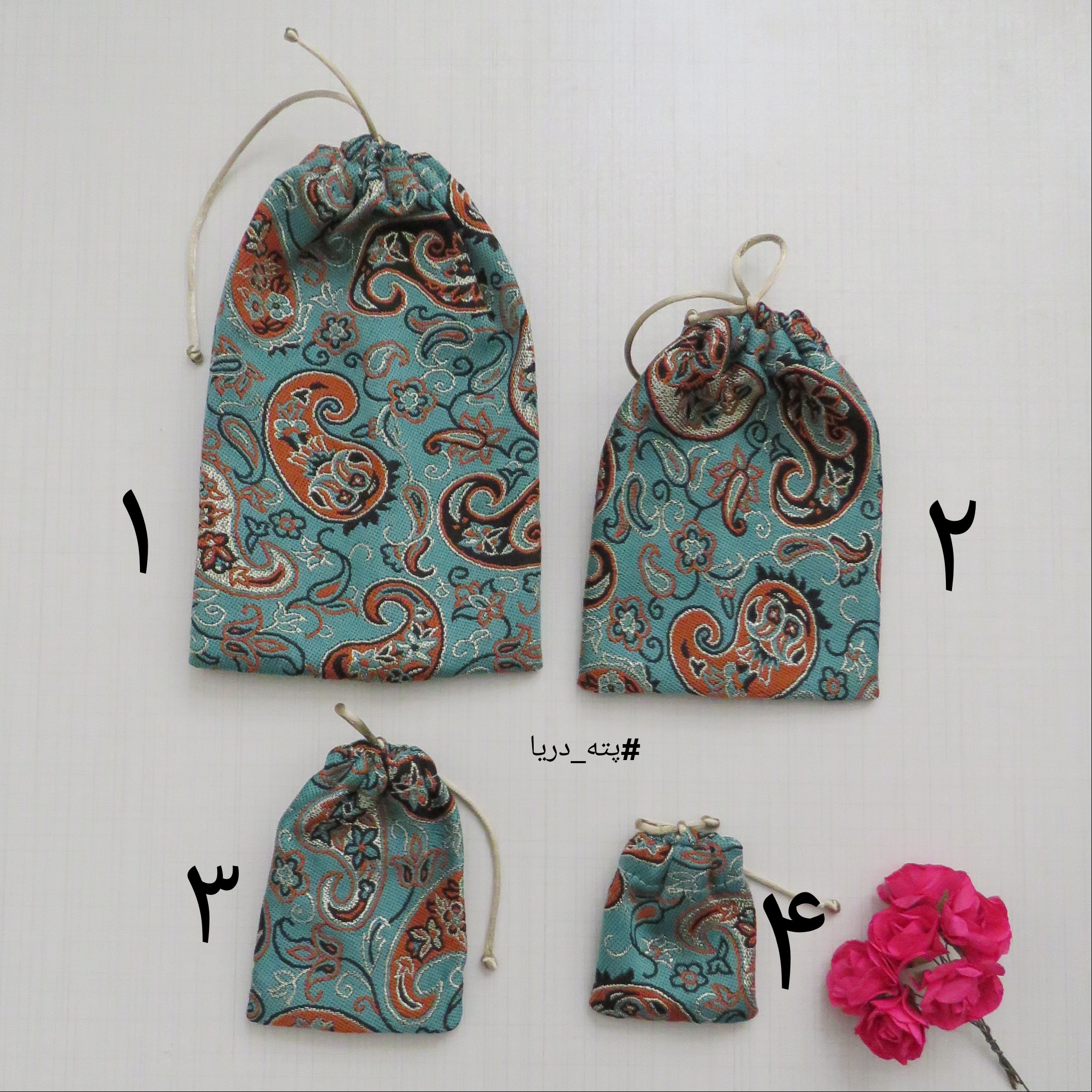 لطفا قبل از ثبت سفارش موجودی بگیرید.🙂 کیسه های ترمه در ۴ سایز تقدیمتون میشن.به عکس دوم و سایر محصولات غرفه توجه بفرمایید.😇🎈🍒