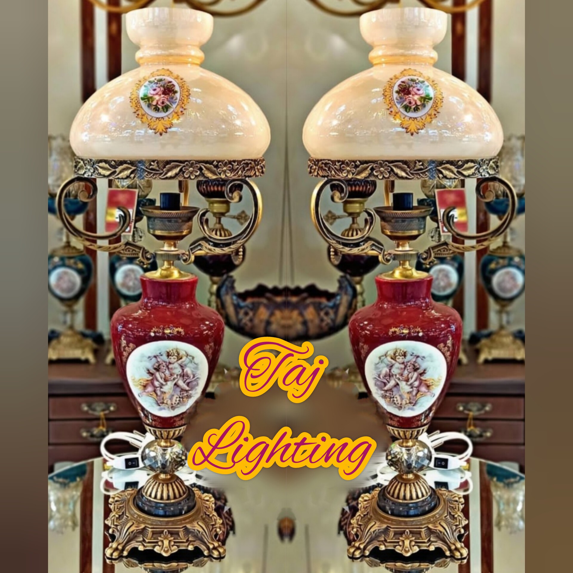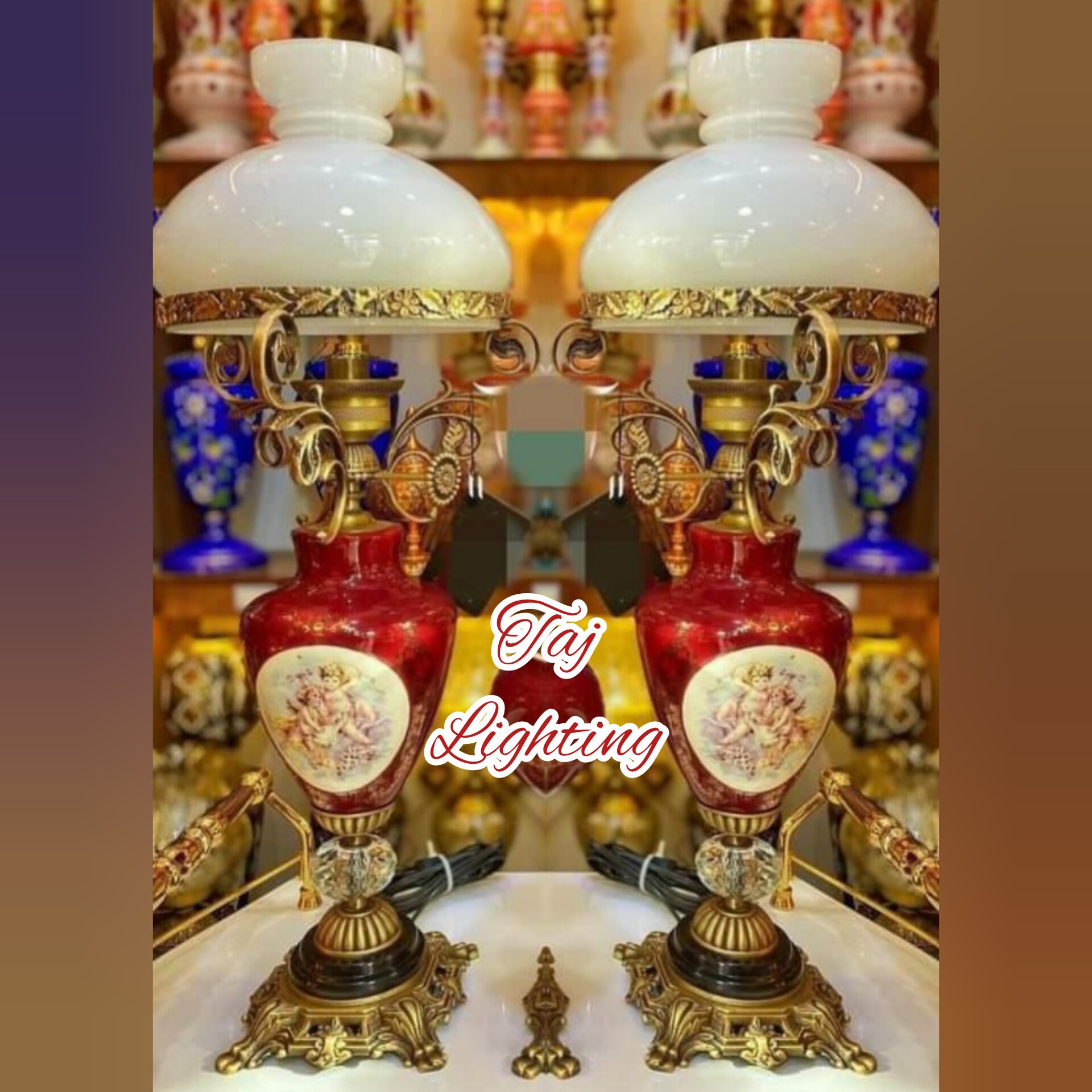 💥قیمت درج شده ، قیمت هر عدد چراغ می باشد جنس حباب : بلور رنگ حباب : کِرِم جنس وسط تنه : چینی رنگبندی وسط تنه : زرشکی ، فیروزه ای ، سورمه ای ، سفید ، یشمی جنس پایه سنگ و برنز با آبکاری آنتیک