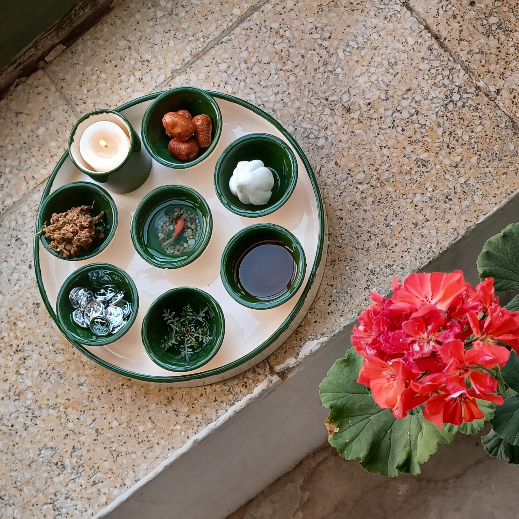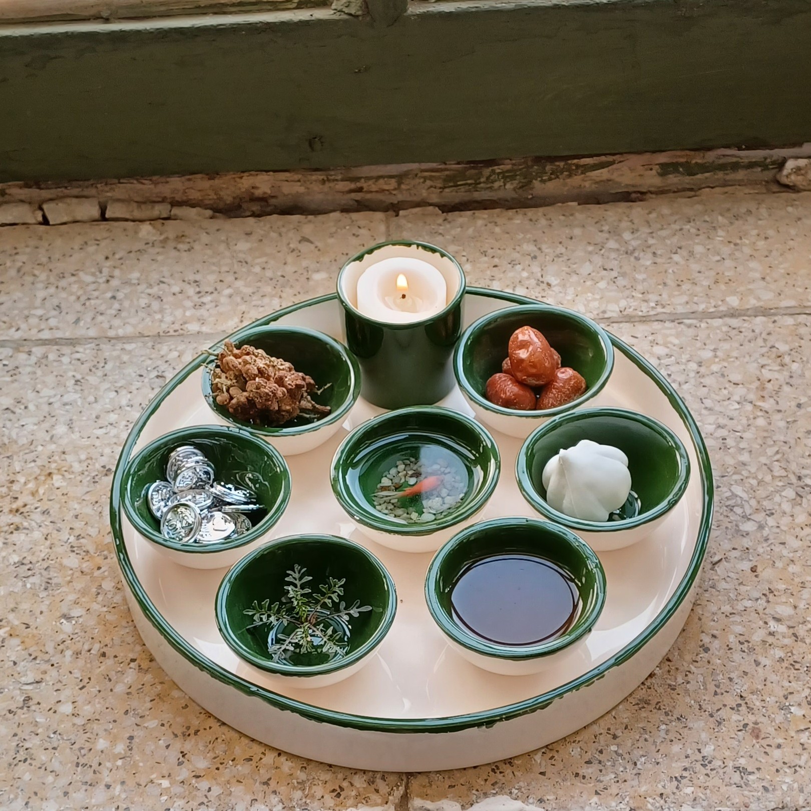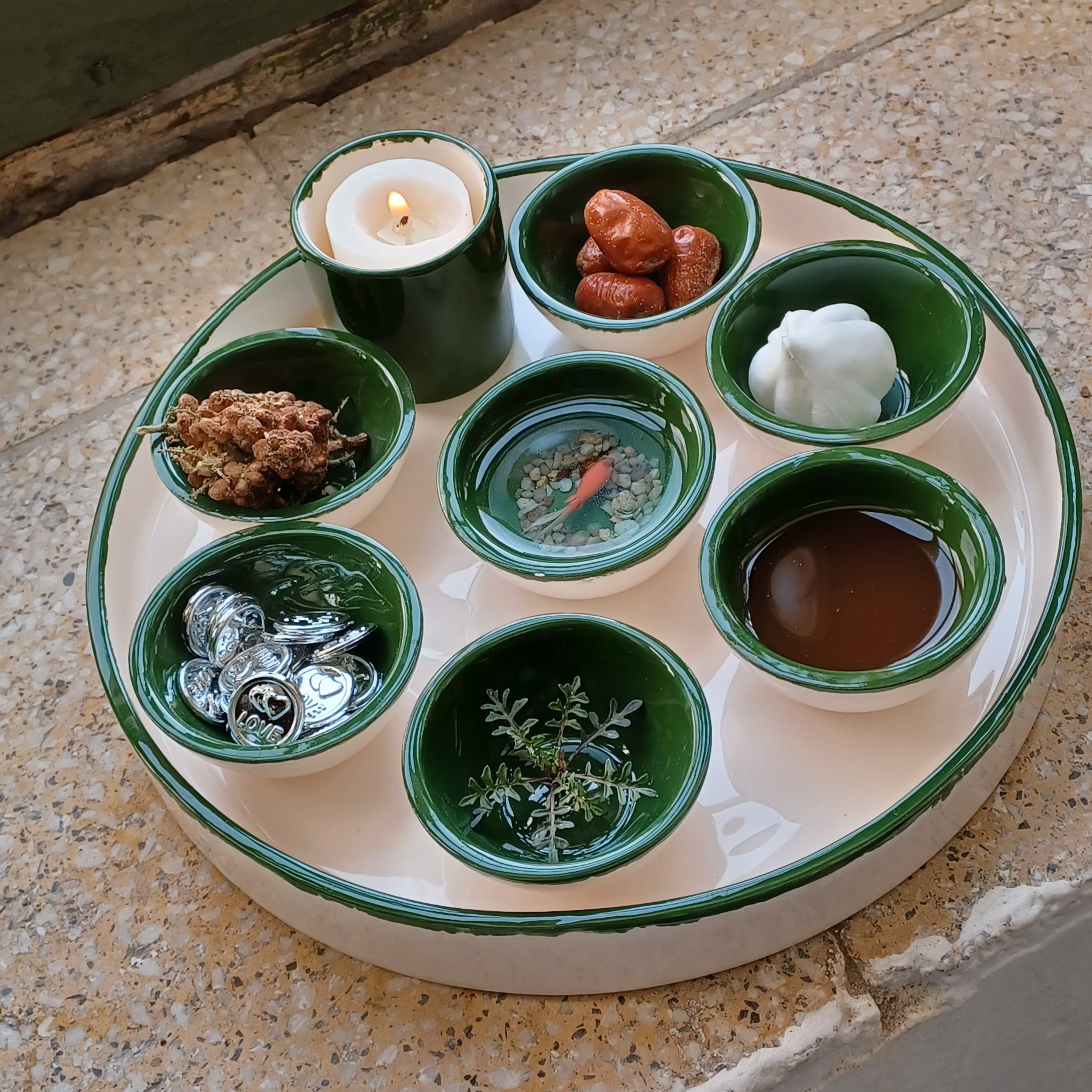 هفت سین مینیمال سرامیکی دست ساز سبز و سفید مبلمونسرا مدل 272551