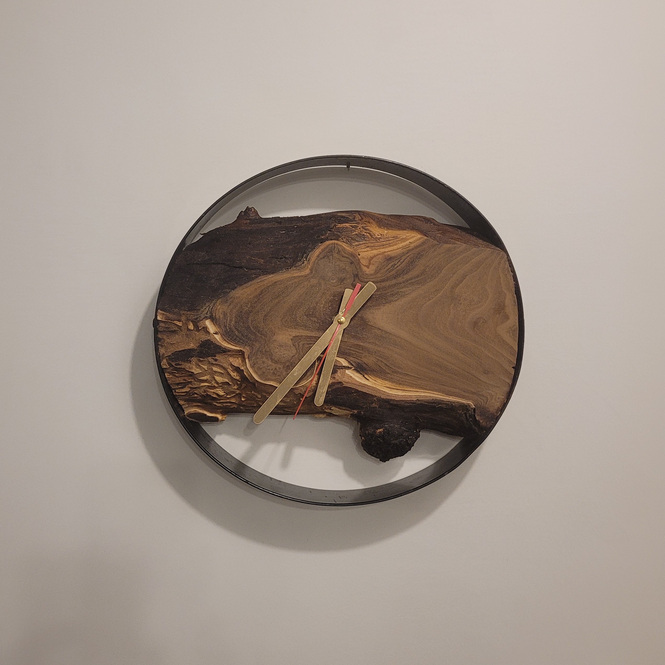 ساعت با موتور آرام گرد و چوب زیبا و روستیک سنجد که زیبایی خاصی به محیط کار یا منزل شما می بخشد .