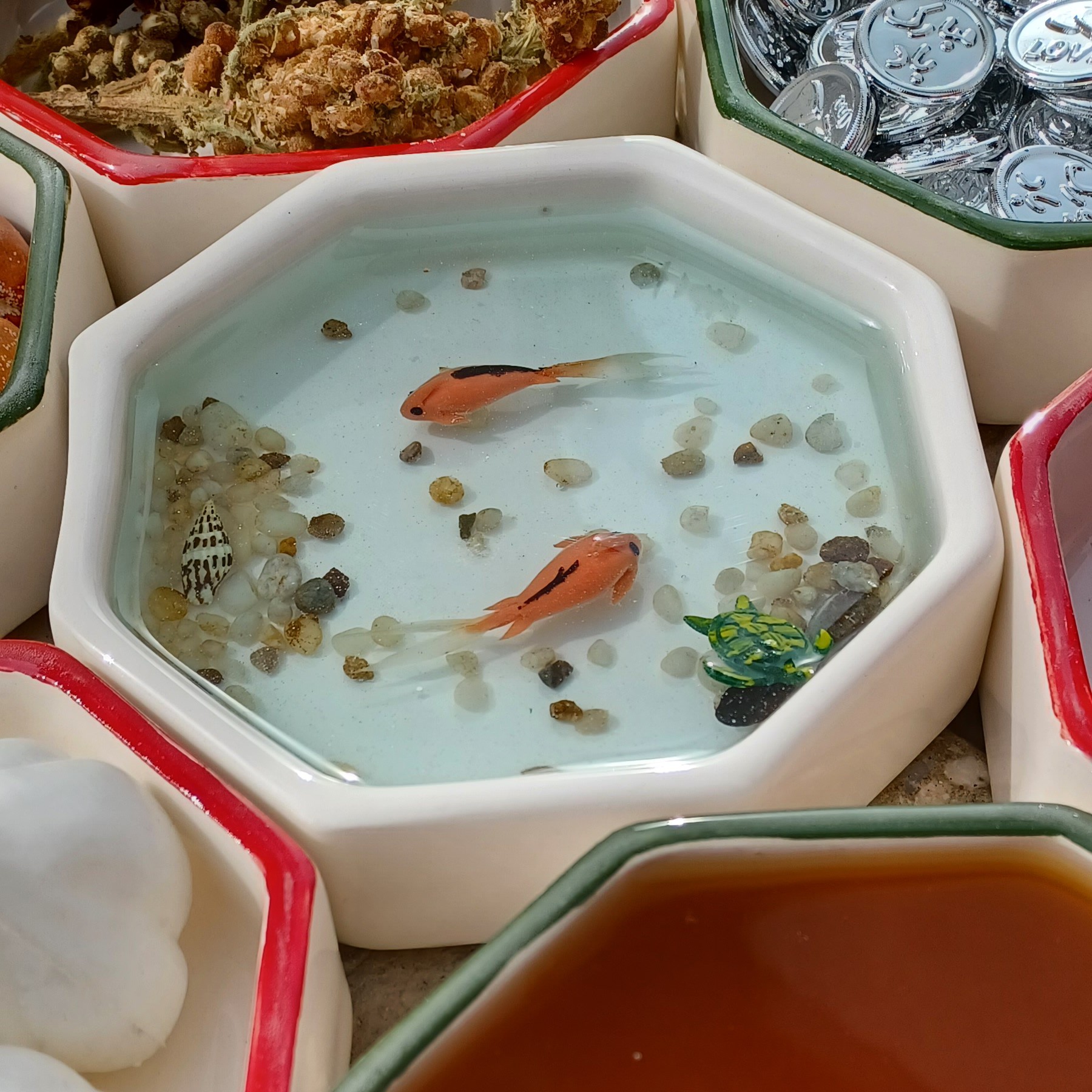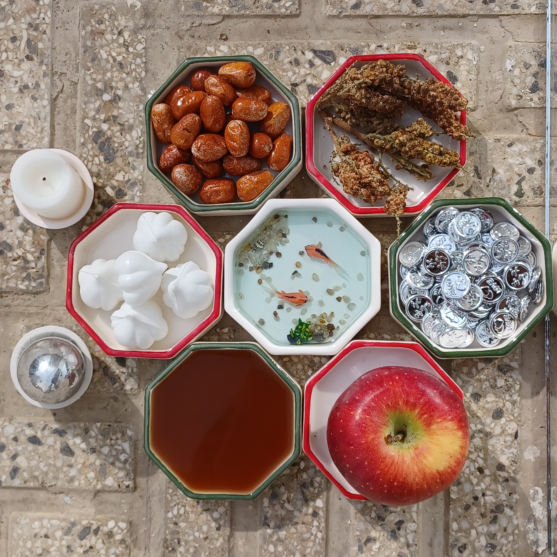 قیمت شامل 6 عدد کاسه و یک عدد کاسه ماهی و شمع سال نو مبارک است. این بشقاب ها هم به صورت تک و هم به صورت شش تایی قابل فروش هستند.