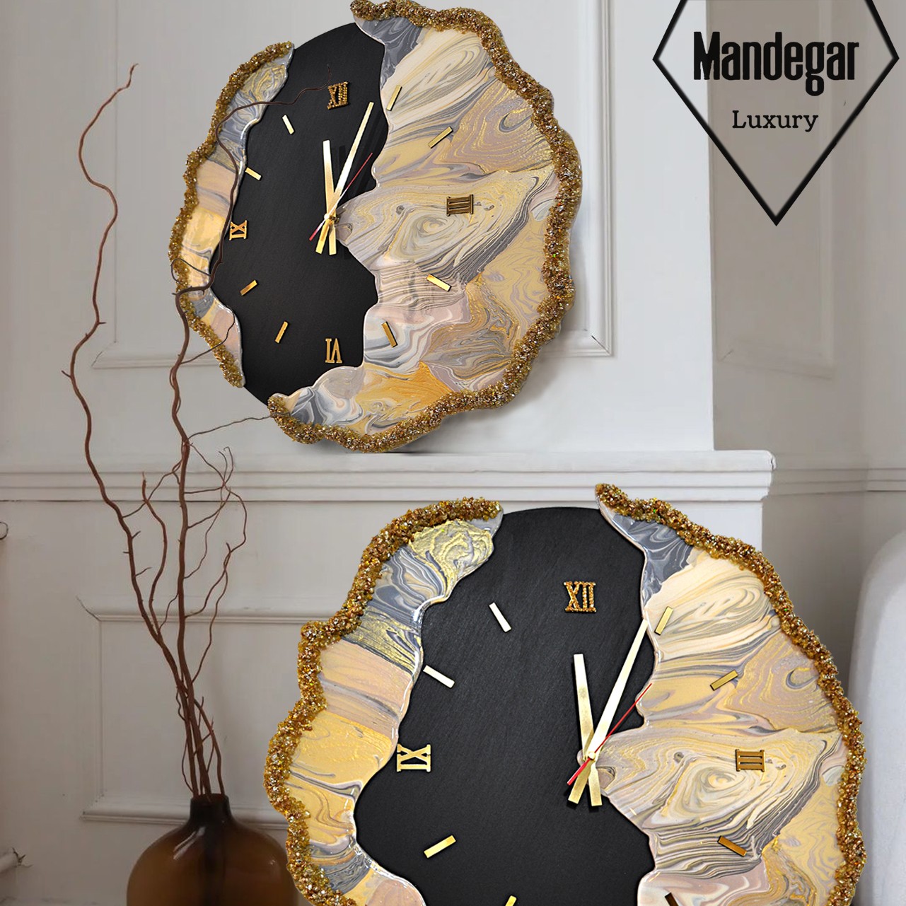 ساعت رزین و سنگ کریستال طرح دفورمه طلایی مبلمونسرا مدل 237531