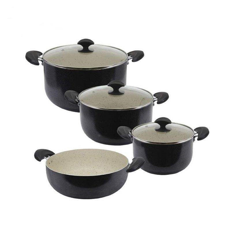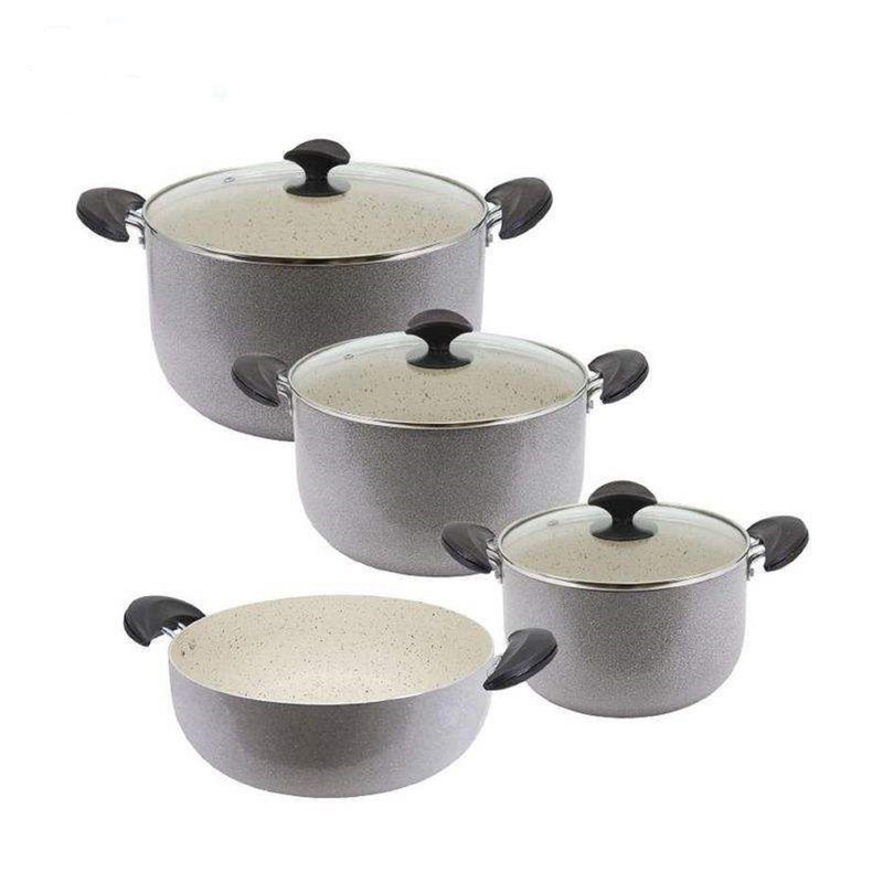 از ملزومات هر آشپزخانه ای میتوان سرویس قابلمه را نام برد. ابزاری که میتواند با کیفیت مطلوب خود کمک بسیاری به پخت یک غذای سالم و خوشمزه کند و آسایش را برای آشپز به ارمغان بیاورد. سرویس های آلمینیومی چند صباحی است بسیار پر رونق تر از قبل وارد این چرخه شده و با توجه به سبکی بیشتر به نسبت چدن و حرارت پذیری بالاتر میتواند به کم کردن مصرف انرژی کمک شایانی نماید. باید در استفاده از سرویس آلومینومی دقت داشت که درجه حرارت آلومینیوم کمتر از چدن است پس شما برای پخت نیاز به شعله بالاو زیاد ندارید و میتوانید با یک حرارت یکنواخت مناسب هم از سوختگی قابلمه و خرابی آن جلوگیری کنید، هم مصرف انرژِی را بهینه کنید و هم پخت مناسب تری داشته باشید. سرویس های ساخت ایران می باشند و در آنها از آلومینیوم با ضخامت بیشتری استفاده شده است که کیفیت کار را مرغوب تر مینماید و همچنین مواد داخل کار از گرانیت می باشد که ضربه پذری کار را بالا برده و همچنین از چسبندگی بسیار بیشتر از تفلون و سرامیک برخورددار است. سرویس های 7 پارچه در رنج قیمتی خود از بهترین سرویس های پخت و پز محسوب میگردند و شما تفاوت کیفیت را در زمانی متوجه خواهید شد که چند سرویس با برندهای مختلف از این نوع کار را در کنار هم مقایسه نمایید.