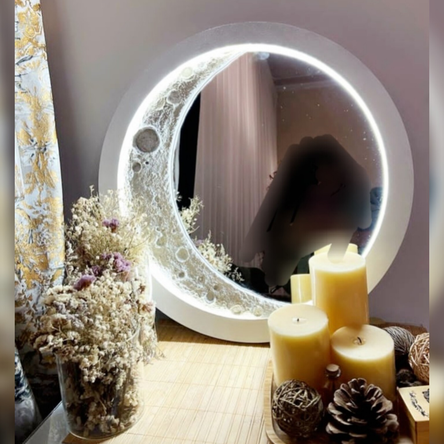 آینه هلال ماه نوری با ریسه رنگ به انتخاب مشتری فقط سایزقطر 40
