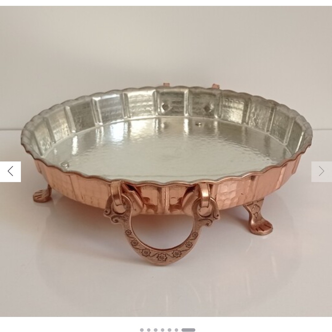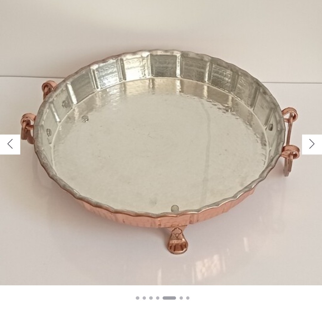 این دیس مسی برای پلو و برنج مناسب هست .دارای سه پایه کوتاه مسی و دو دسته مسی برای حمل دیس هست و قسمت مسی رنگ آن نانو شده تا سیاه نشه.بهترین کیفیت از نظر وزنی و اندازه میباشد