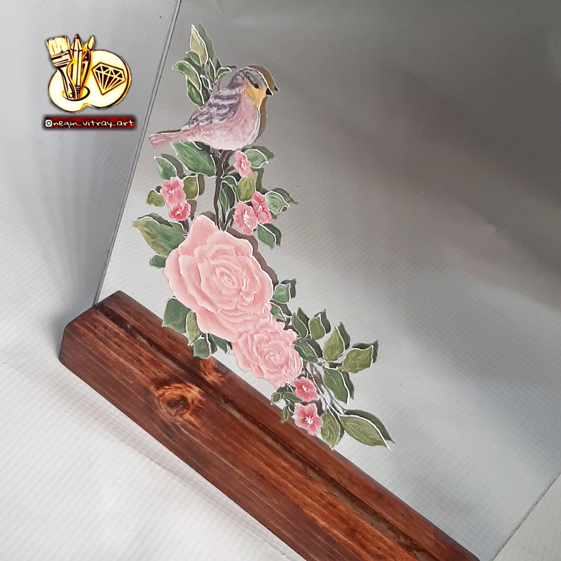 قابل گردگیری با دستمال نم دار کار شده روی آینه با تکنیک ویترای