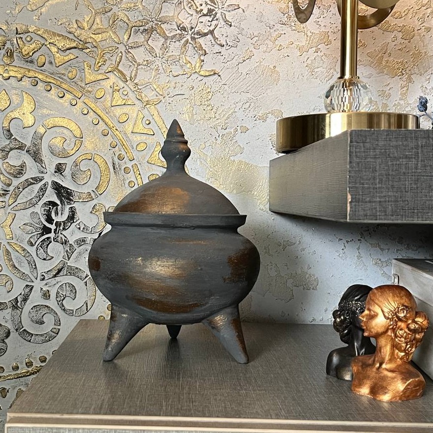 ظرف شکلات خوری پلی استر پتینه شده ارتفاع بیست و هفت سانت و قطر پانزده دور ظرف پنجاه و هفت سانت مبلمونسرا مدل 296129