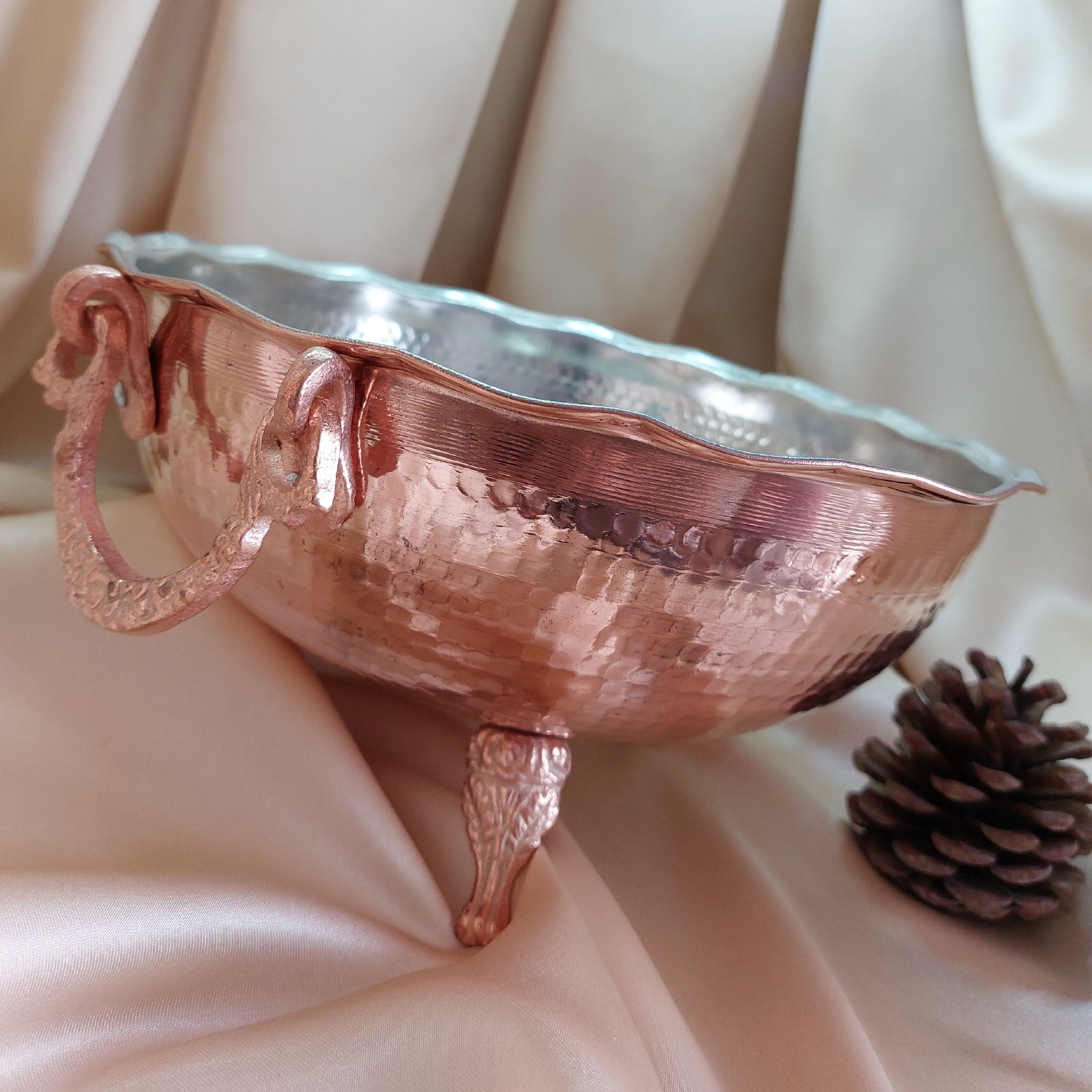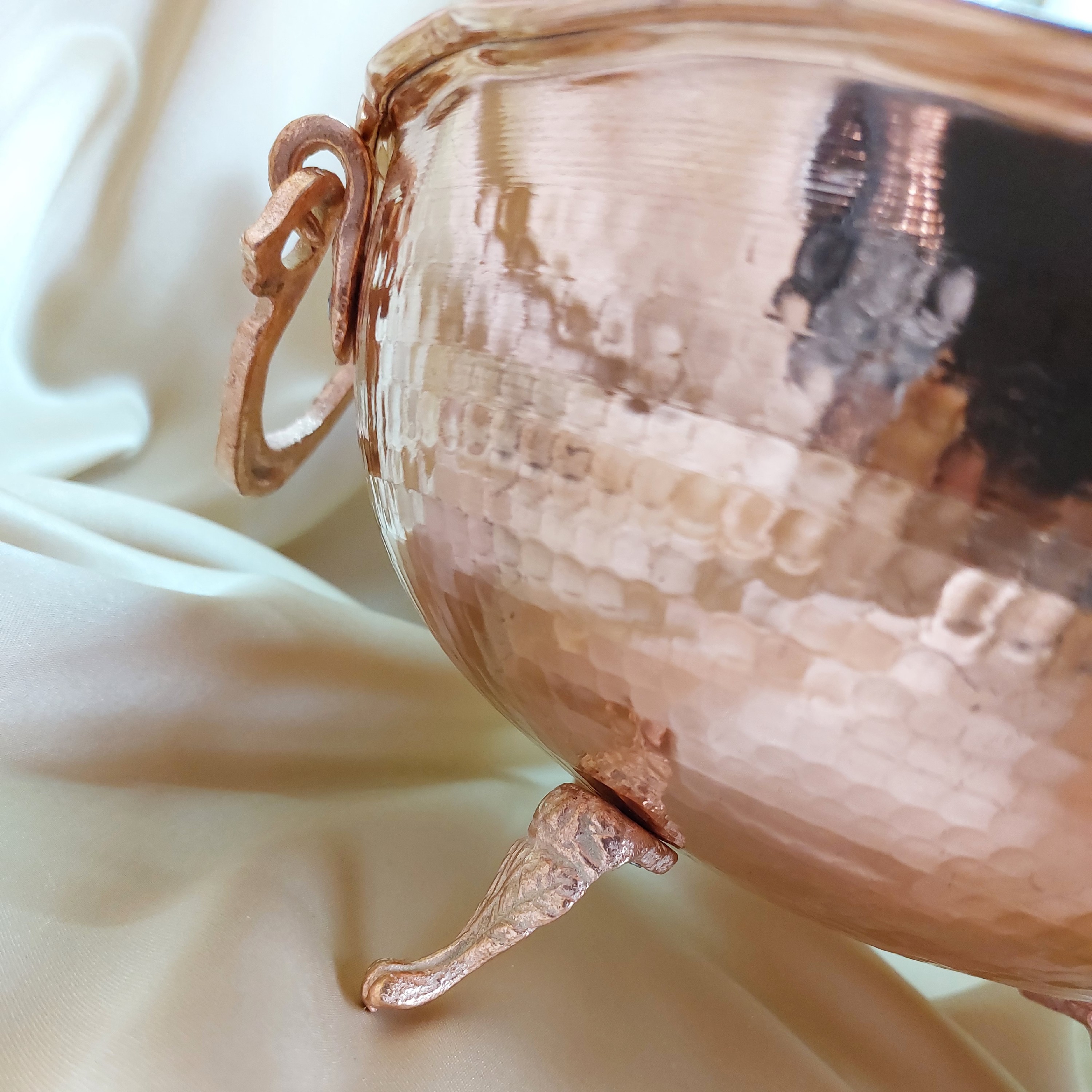 سوپ خوری مسی چکشی کاسه دسته دار مسی چکشی ساخته شده از ورق ضخیم و سنگین مسی کیفیت تضمینی