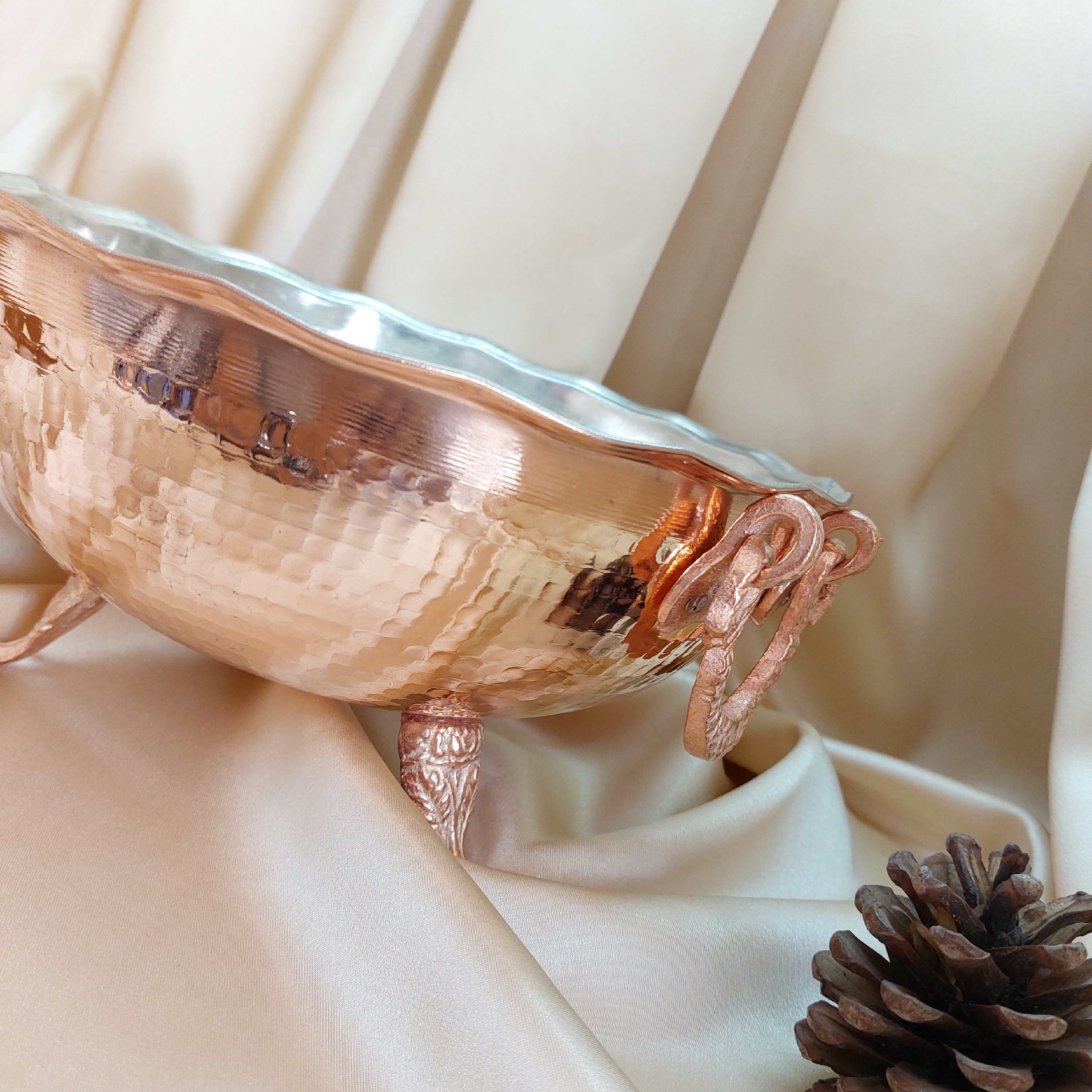سوپ خوری مسی چکشی- کاسه مسی دسته دار- قطر 27 سانت مبلمونسرا مدل 289413
