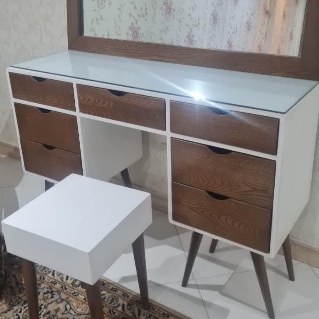 میز آرایش بدونه آینه و پاف رنک سفید و گردویی جنس ملامینه مبلمونسرا مدل 224221
