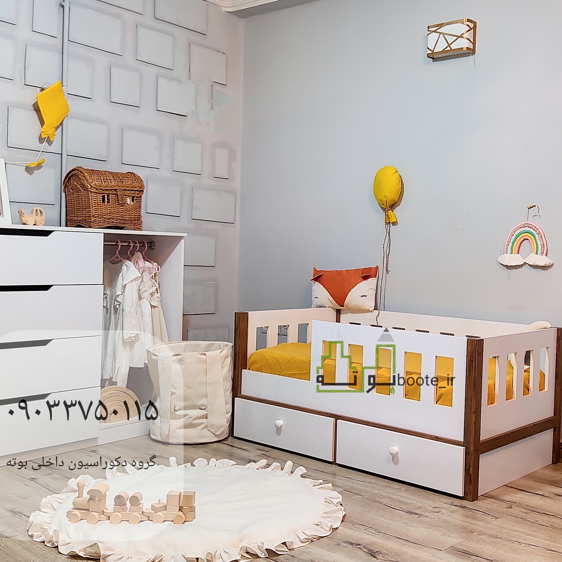 تخت ساخته شده از ام دی اف وکیوم هست بدنه از جنس ام دی اف ملامینه هست.تخت کودک بسیار شیک و خاص