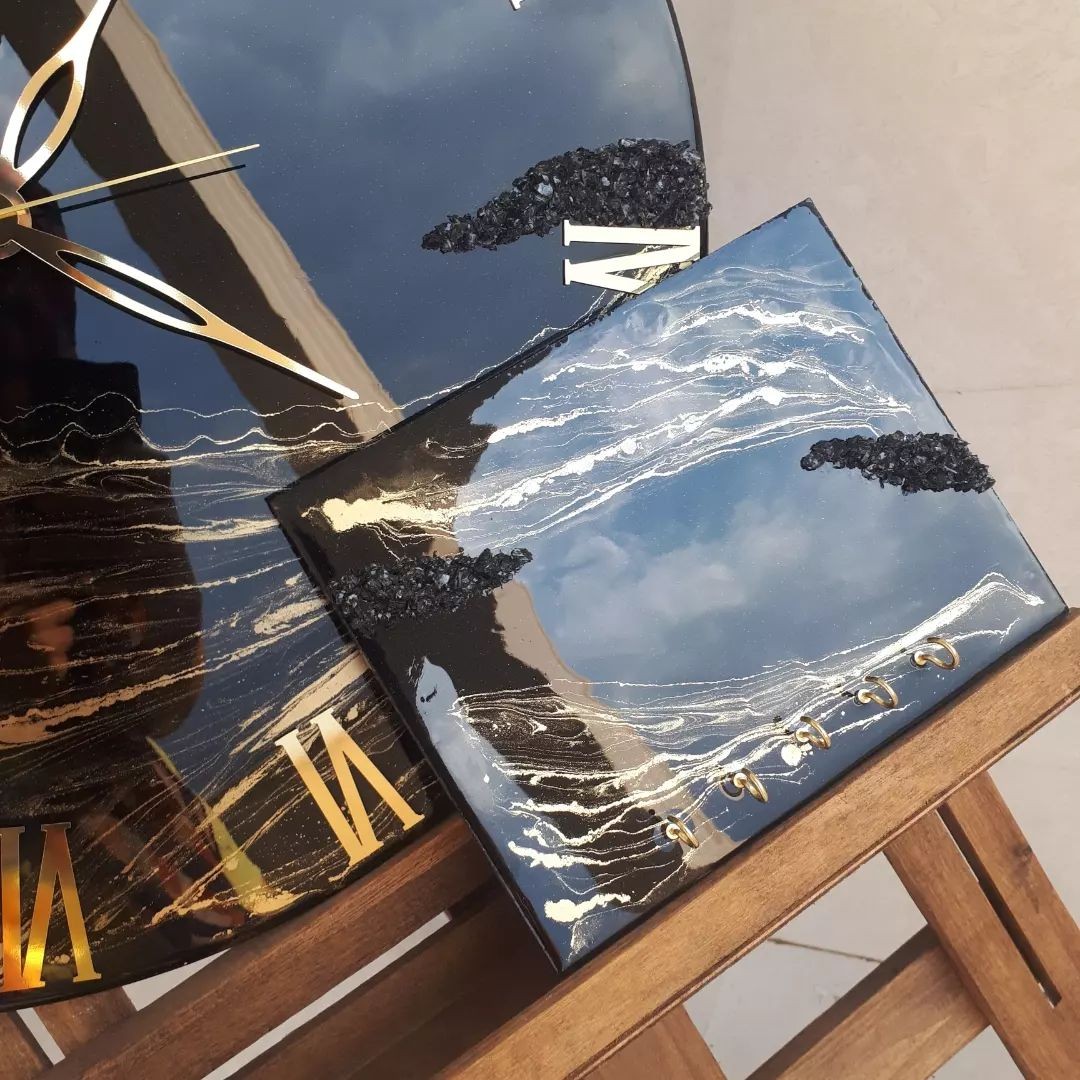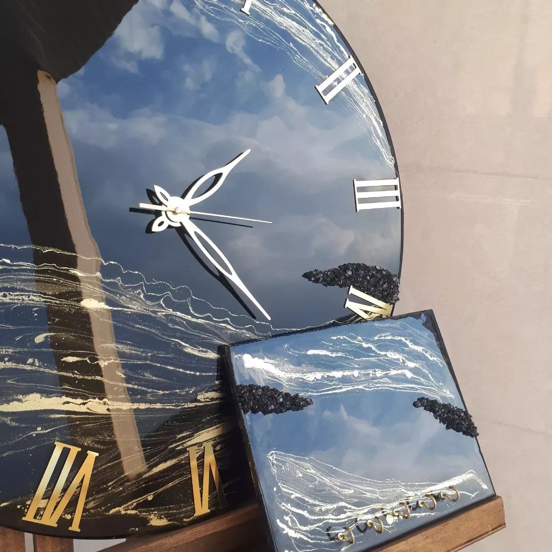 ساعت دیواری رزینی سایز50با ست جا کلیدی سایز20 مبلمونسرا مدل 237425