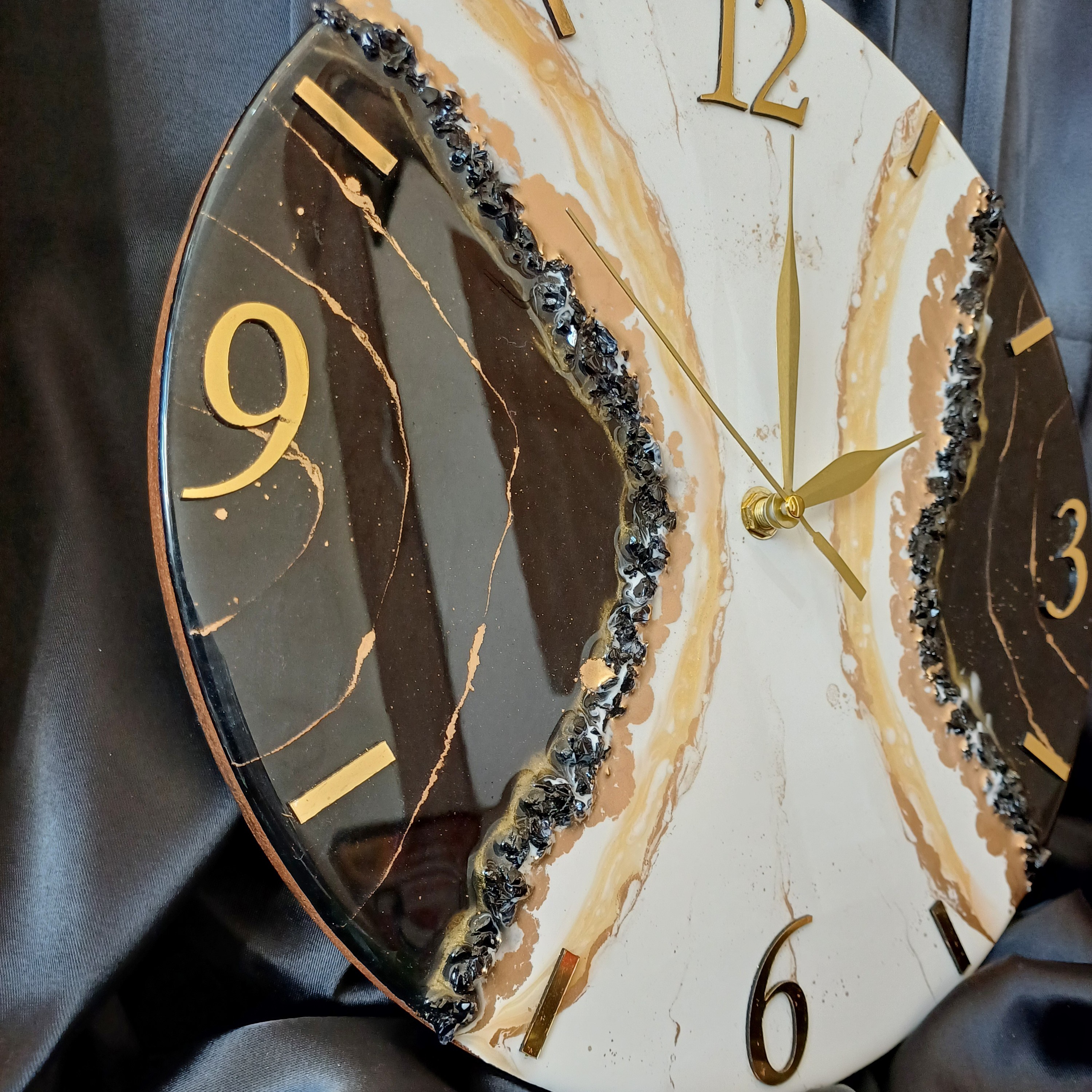 ساعت دیواری رزینی قطر 30 سانت بیس کار چوبی موتور آرام گرد تایوانی با ضمانت شش ماهه بر اساس رنگ و ابعاد دلخواه مشتری قابل سفارش هست