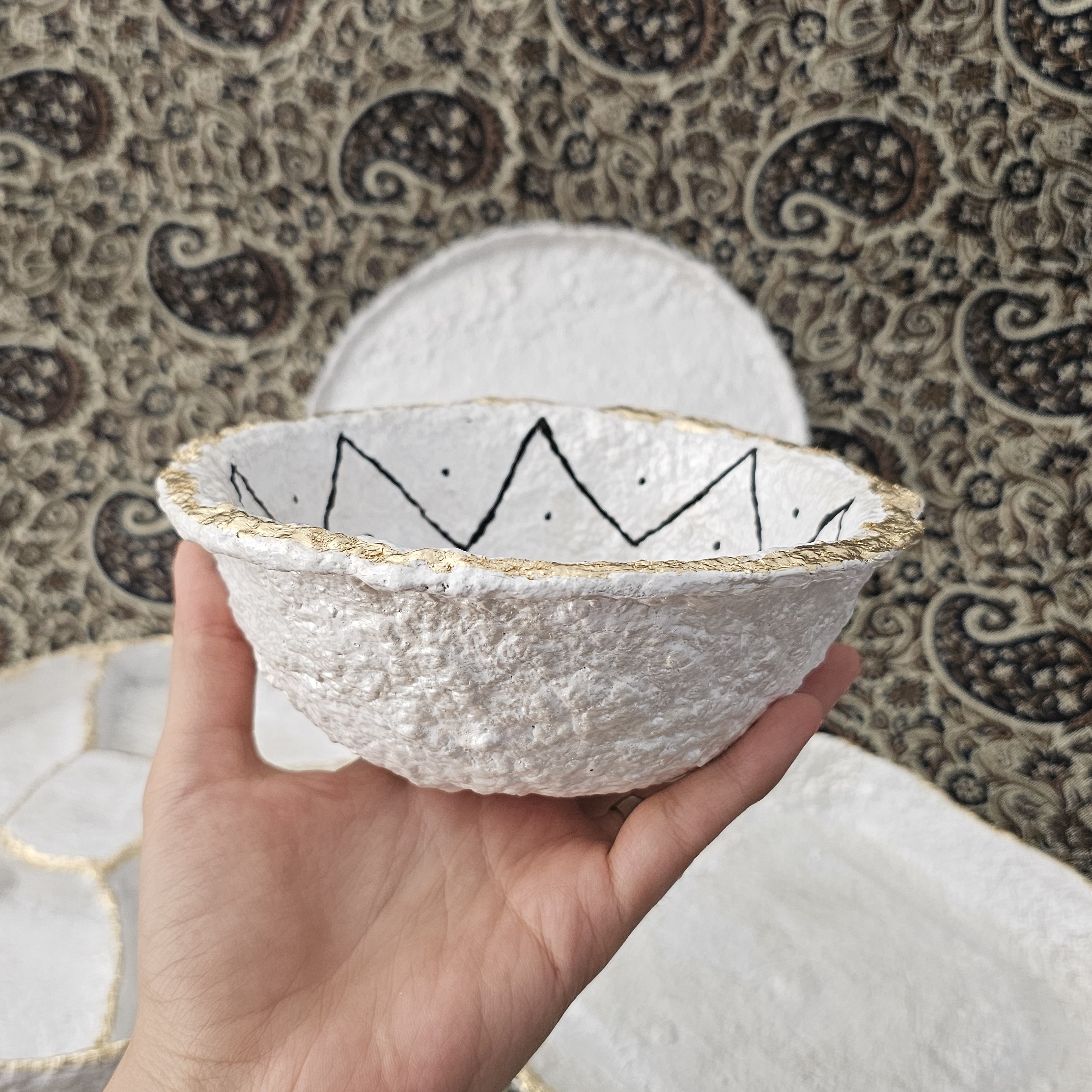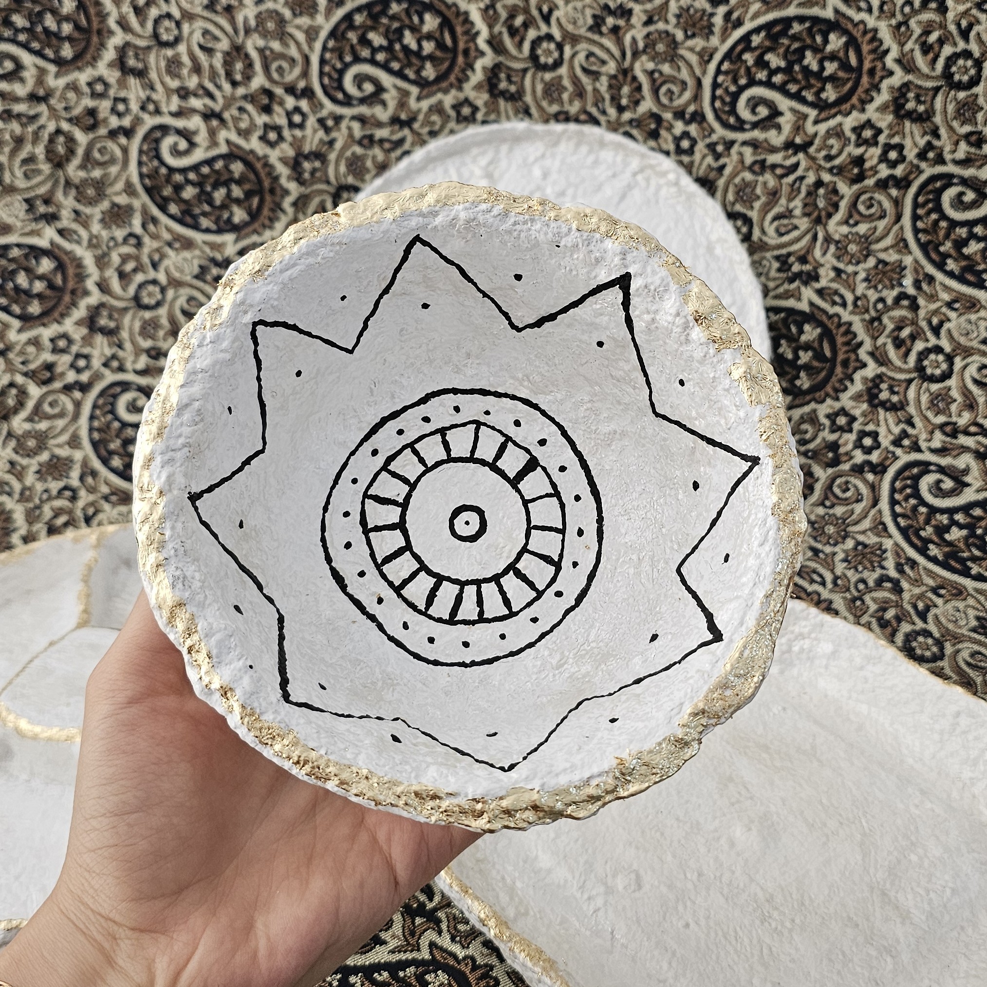 شکلات خوری کاسه دکوراتیو پاپیه ماشه قطر 13 سانت مخصوص تنقلات خشک مبلمونسرا مدل 291875
