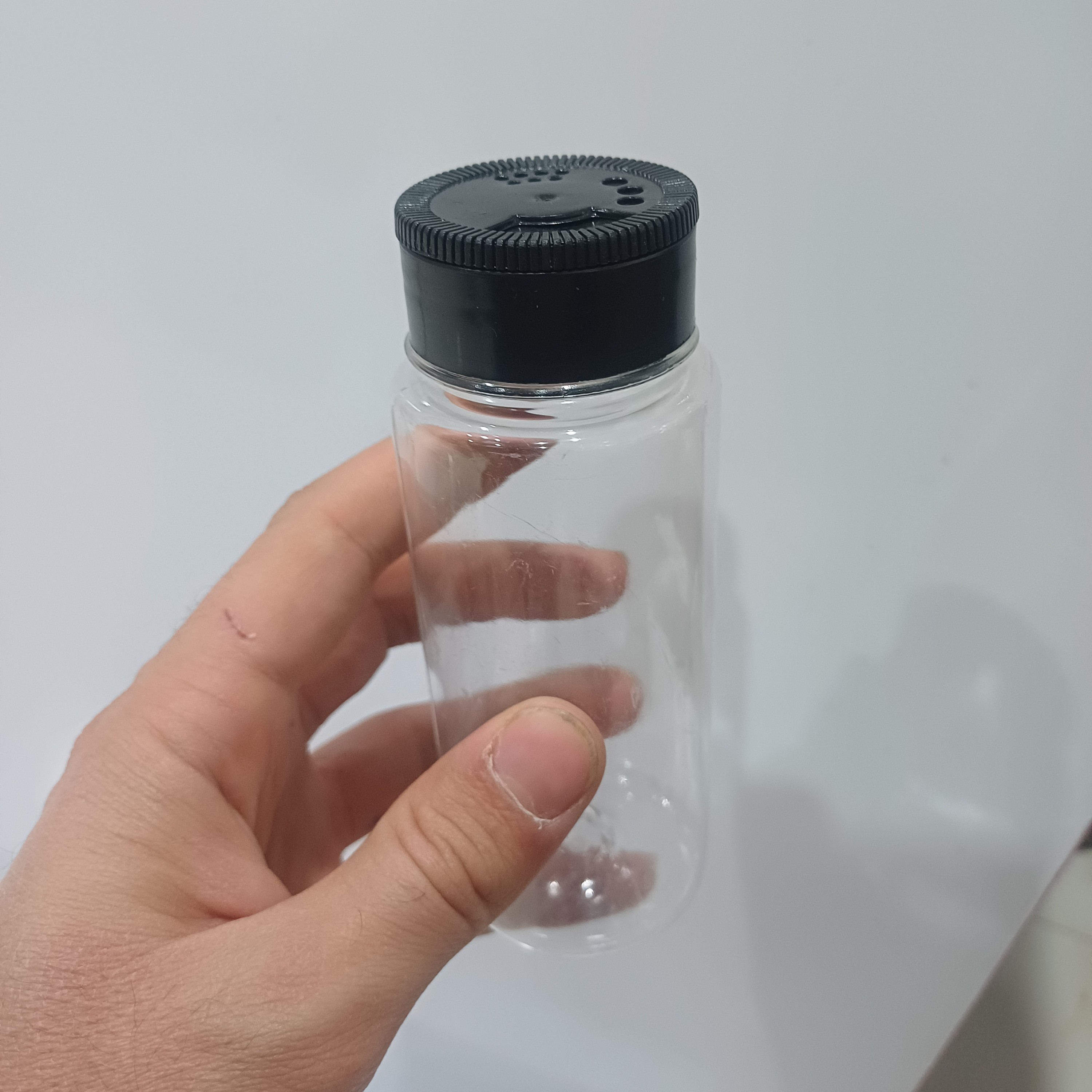 دارای درب چرخان سه حالت پاشش 100گرم گنجایش بدنه شفاف درب مشکی چرخان