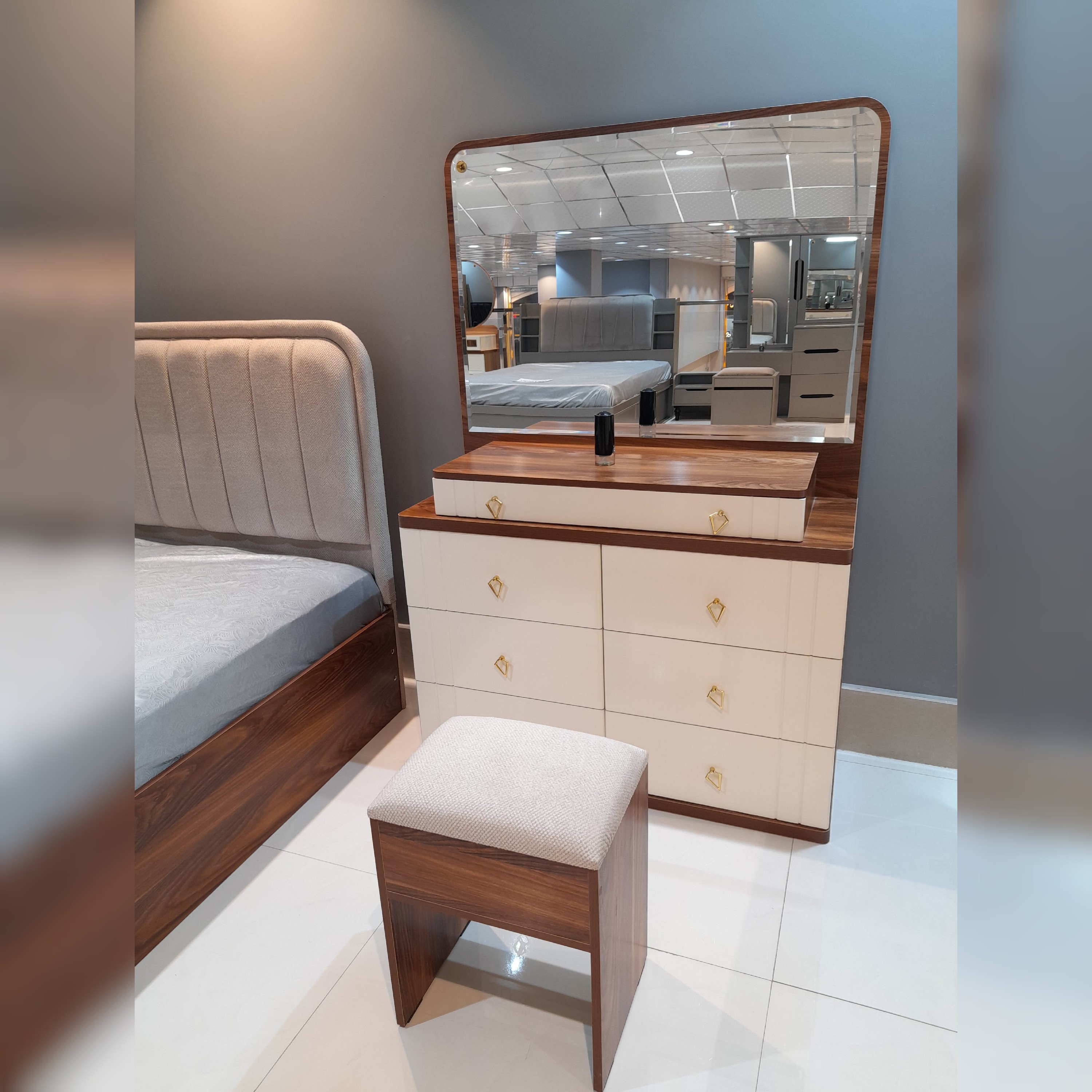 این مدل شامل تخت و میزارایش و پاتختی و صندلی و آینه گردان می باشد.محدودیتی برای رنگ بندی و سایزبندی وجود ندارد.